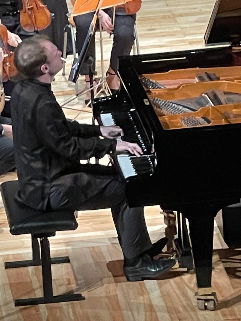 The red hot passion of the Schumann Fantasie.Written as an outpouring of love for his future wife Clara Wieck .Alex plunged in with a passion and savage rhythmic intensity that was quite overwhelming .The burning passion and unrelentless forward movement found momentary respite in the ‘Im legendenton’ played with such a mellifluous freedom that the bar lines ceased to exist as it built in tension to the true climax of this movement. The right hand once again found itself in foreign territory as it added to the enormous sonority being created.Schumann’s quote from Beethoven’s ‘An die ferne Geliebte ’ was played with great liberty and I wonder if Alex knows something more than is just printed in the score as the movement moved to it’s magical conclusion