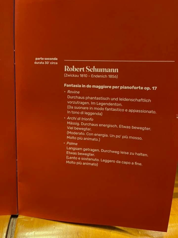 The original title of Schumann’s work was “Obolen auf Beethovens Monument: Ruinen, Trophaen, Palmen, Grosse Sonate f.d. Piano f. Für Beethovens Denkmal”. The movements’ subtitles (Ruins, Trophies, Palms) became Ruins, Triumphal Arch, and Constellation, and were then removed altogether before Breitkopf & Härtel eventually issued the Fantasie in May 1839.Dedicated to Franz Liszt , who replied in a letter dated June 5, 1839: “The Fantaisie dedicated to me is a work of the highest kind – and I am really proud of the honour you have done me in dedicating to me so grand a composition” Liszt in return dedicated his B minor Sonata to Schumann – two pinnacles of the Romantic piano repertoire .The piece has its origin in early 1836, when Schumann composed a piece entitled Ruines expressing his distress at being parted from his beloved Clara Wieck (later to become his wife). This later became the first movement of the Fantasy adding later that year two more movements to create a work intended as a contribution to the appeal for funds to erect a monument to Beethoven in his birthplace of Bonn.So it was hardly surprising the imperious opening of Alex’s second movement – Triumphal Arch indeed .Although written mezzo forte in the score it was of truly orchestral proportions building unbelievably in sonority each time it reappeared.The beauty of the ‘etwas langsamer’came as a true relief from the relentless rhythmic drive and enormous sounds that Alex coaxed out of this beautiful Steinway piano.