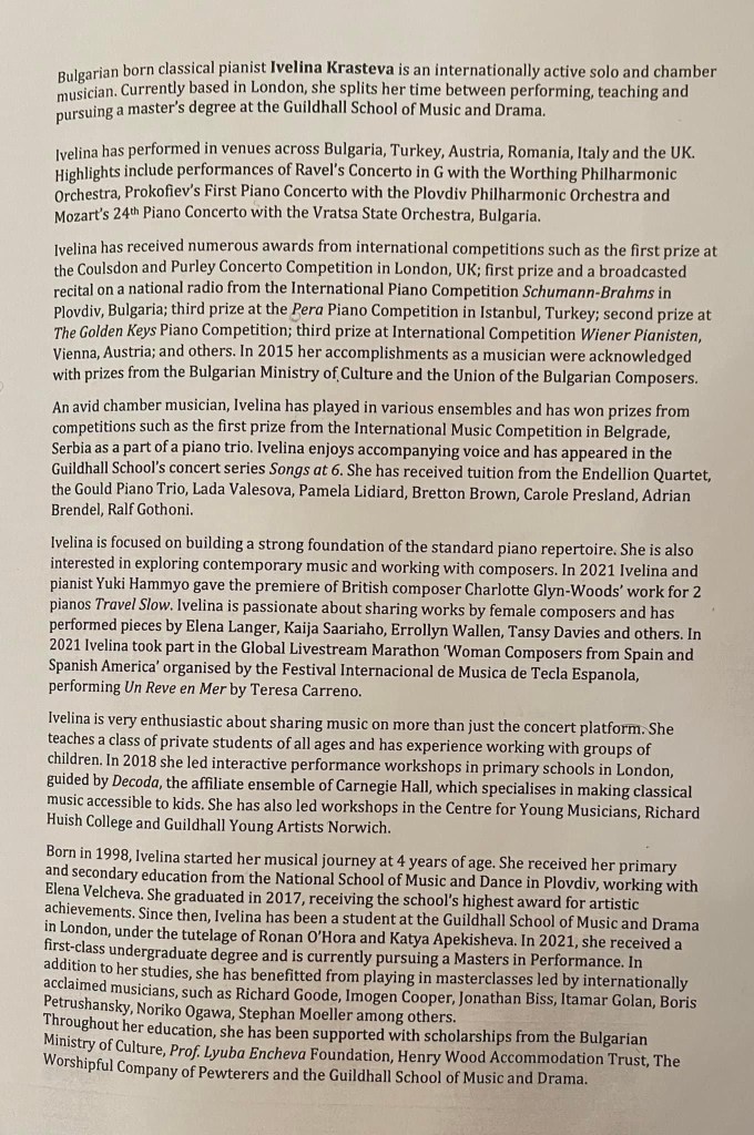 Tyler Hay was born in 1994 and gained a place to study at the Purcell School in 2007 where he studied under Tessa Nicholson. He studied with Graham Scott and Frank Wibaut at the RNCM and with Niel Immelman and Gordon Fergus-Thompson at the RCM. Tyler has performed Rachmaninoff’s 2nd Sonata at Wigmore Hall, Scriabin’s 5th So nata at the Purcell Room and Ravel’s Concerto for Left Hand Alone at the Queen Elizabeth Hall . In 2016, Tyler won first prize in the keyboard section of the Royal Overseas League Competition and as well as winning the RNCM’s Gold medal competition, also won first prize in the Liszt Society Competiti on. He competed in the final stages of the Leeds International Piano Competition in 2021 and won 1st prize in the Dudley International Piano Competition in November, 2022. CDs of Liszt, John Ogdon and Kalkbrenner are available on Piano Classics and Tyler’s latest album of virtuoso piano music by Simon Proctor is now available on Navona Records