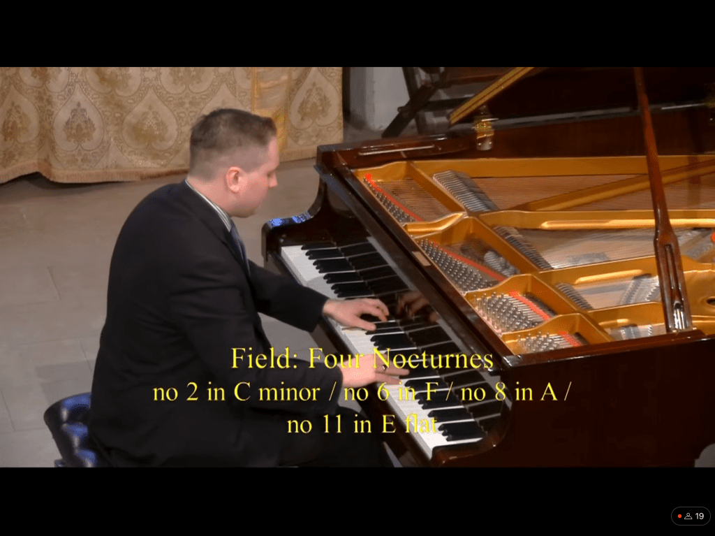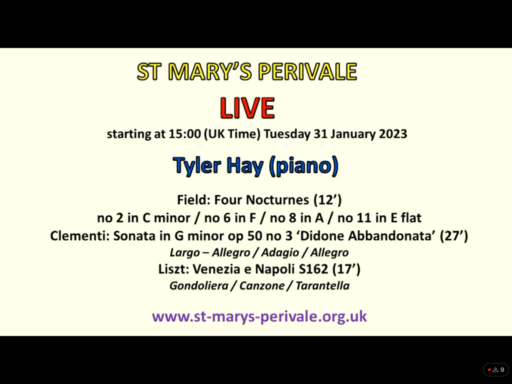 I have heard Tyler play many times over the past few years and it is good to see how he has matured into an artist of great stature.A technical assurance allied to a musical intelligence and curiosity that allows him to delve deep into the piano archives finding many unjustly neglected scores.The marvel is that Tyler together with Mark Viner and Thomas Kelly are a hope for future music making and are able to bring their discoveries vividly to life in recording and on the concert platform Three artists ,each very different,all with a superb technical training giving their playing such weight and assurance.Not always an easy thing as much of the music was written for composer – virtuosi and make great demands on the pianist.All three received their early training at the Purcell School for gifted young musicians and all three went to the Royal College of Music to perfect the base that they had been given as gifted youths.Both Tyler and Mark Viner studied with that superb trainer of young musicians Tessa Nicholson (both later perfecting their studies with Niel Immelman ).Another of her students from Purcell and later continuing with her at the RAM,Alim Beisembayev ,recently won the Gold Medal at the Leeds.Thomas Kelly studied with the late Alan Ball at the Purcell School and later at the RCM .The intense beauty Tyler brought to the Field nocturnes was matched by the dynamic virtuosity required from Clementi (his infamous Gradus ad Parnassum gives some idea of what is expected).The Liszt Venezia e Napoli showed off his superb sense of style as well as dynamic showmanship.