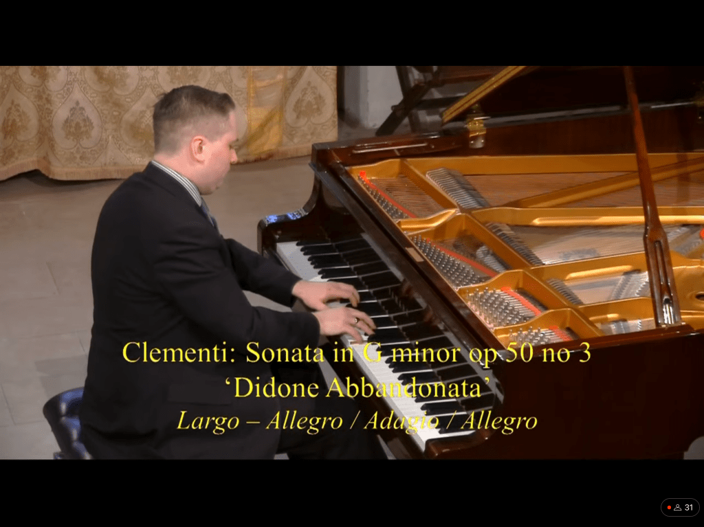 Didone Abbandonata – Piano Sonata in G, Op. 50, No.3 is the final sonata composed by Muzio Clementi in 1821. It was titled after Metastasio’s often-set opera libretto where Clementi seeks to tell the tragic story of Virgil’s heroine instrumentally. It is the only example of such a programmatic piece in the composer’s oeuvre.One of the most eminent pianists of his time – who even engaged in a contest with Mozart and did not lose – Muzio Clementi created fundamental pedagogical works for piano and altogether 63 sonatas for piano solo. Didone abbandonata dates from his last compositional opus for solo piano sonatas written in 1821. The topic of Dido, who was abandoned by Aeneas and expressed her grief through mourning, despair and, ultimately, raving madness, was extremely popular and subjected to countless arrangements since the 17th century in operas, single “scena” and many instrumental works. The performance instructions for the sonata are as numerous as they are uncommon, and symbolize Dido’s hyper-expressiveness.