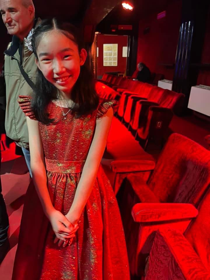 Himari played it with admirable musicianship and sense of style with a very solid declamatory opening where the difficult dotted rhythms were impeccably played.The Allemande flowed beautifully as did the Sarabande giving great shape to the fluidity of Bach’s genial outpouring of song.The Courante needed a clearer articulation that will come with time as she works hard with her teacher to obtain ‘fingers of steel but wrists of rubber’ to quote Busoni.Work in progress that already shows a great understanding of the shape and style and with time she will perfect the inner details.A remarkable performance though played without the score which for a ten year old is already a great achievement and gives hope for a future career as her studies progress.