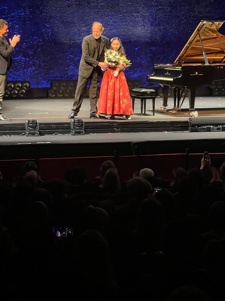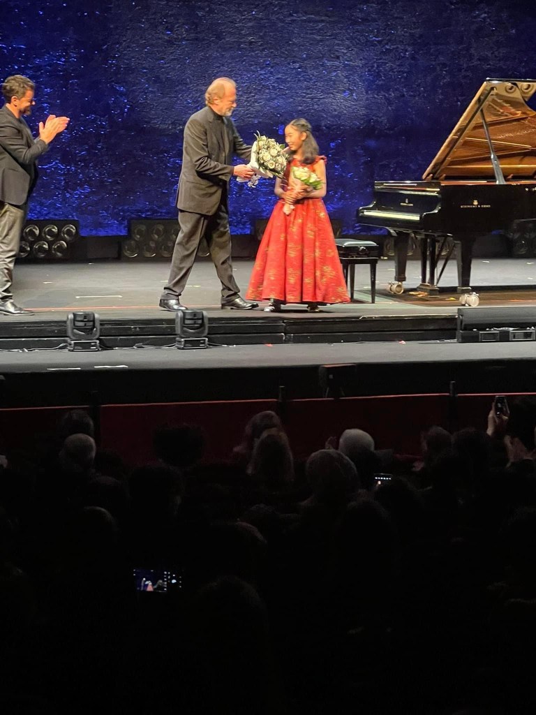 Il programma della serata, di grande impegno tecnico e musicale, è dunque affidato ad una bambina dalle incredibili capacità musicali e pianistiche. Bach, Clementi, Chopin e Debussy eseguiti in maniera stupefacente. Afferma il suo Maestro: “Il nostro è un lavoro di grandissima attenzione reciproca, trascorriamo ore e ore insieme al pianoforte. Certamente è una allieva dotata di qualità eccezionali, ma studia con grande dedizione e metodo. Il lavoro del pianista si costruisce soltanto così. E’ una gioia per me che possa far sentire dal vivo ciò di cui è capace”.