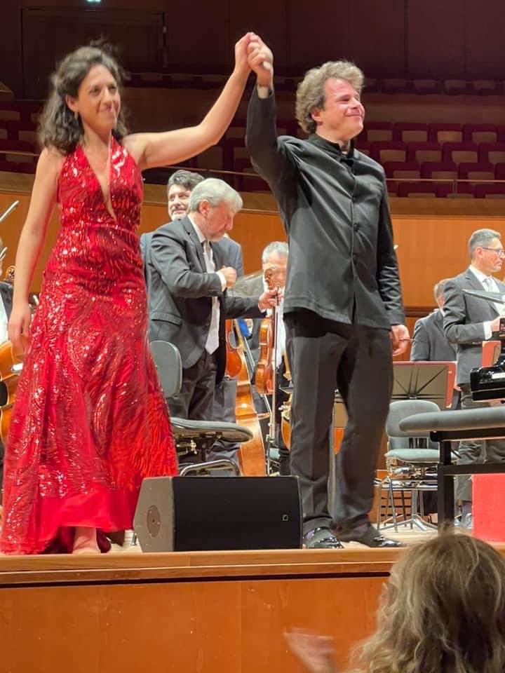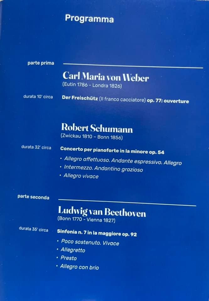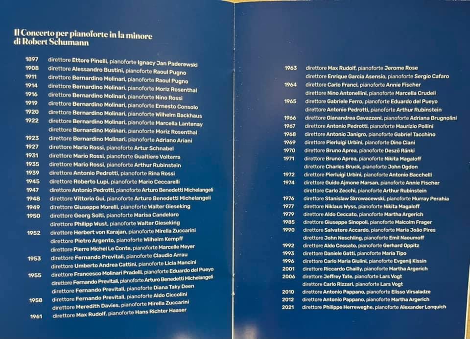 A musical conversation with an orchestra that was listening as attentively as she,and both responding with unusual poetic intimacy. Even at the end of the cadenza where for an instant Beatrice’s command of the piano and its overwhelming sonorities allowed a moment of flaming glory.It was to dissolve into counterpoints usually in lesser hands of knotty twine.In her hands today they were glistening layers of sound that moved inexorably to the energy that was to bring us to the close of this movement. A fantasy that he had written for his Clara and only later added two movements to complete the concerto we know and love today. Beatrice was in dreamy mood today and although the Intermezzo was ravishingly beautiful I found it more whispy and capricious rather than simply grazioso. Continuing her ever more intimate conversations with the superb solists of this great orchestra.Luigi Piovano we know is a great cellist and he was matched today by the magnificence of the wind players with Andrea Oliva,flute;Francesco Di Rosa,oboe;the superb clarinet of Stefano Novelli and the horn of Alessio Bernardi.