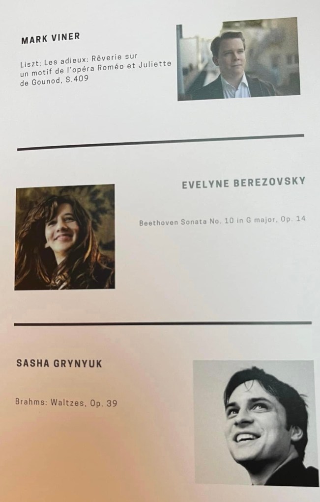 Samson Tsoy opening his recital with the Brahms Handel Variations followed by the four Klavierstucke op 119. Even the hall thought it must be a mistake and had to make an announcement to confirm the order that Samson had obviously communicated previously. A very bold move until we heard this early Brahms masterpiece in Samson’s hands played with such sensitivity and gentle luminosity where usually we are assaulted by robust ‘orchestral’ sound and strenuous virtuosity. This was quite a revelation as he moved from one variation to another with ravishingly delicate playing of exquisite tonal colour.There was grandeur and dynamism when called for but the overall impression was that this is the same ethereal world of his later miniature masterpieces of op 117,18 and 19. Schubert’s last Sonata was played with gentle authority of great aristocratic poise and poignancy. Momentary flashes of ‘storm und drang’were short lived as Schubert’s profoundest of utterings were given all the time needed to ravish and seduce the senses for the last time. The Impromptu in E flat played as an encore produced streams of sounds of pure gold as the jeux perlé notes were shaped with the same sensitivity and loving care that had been the hallmark of a recital dedicated to pure beautiful music making.An ovation,whistles and cat calls were greeted at last with a smile from this very dedicated young artist.