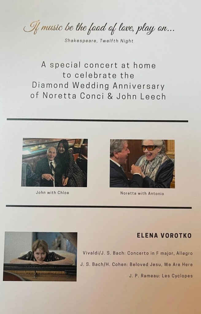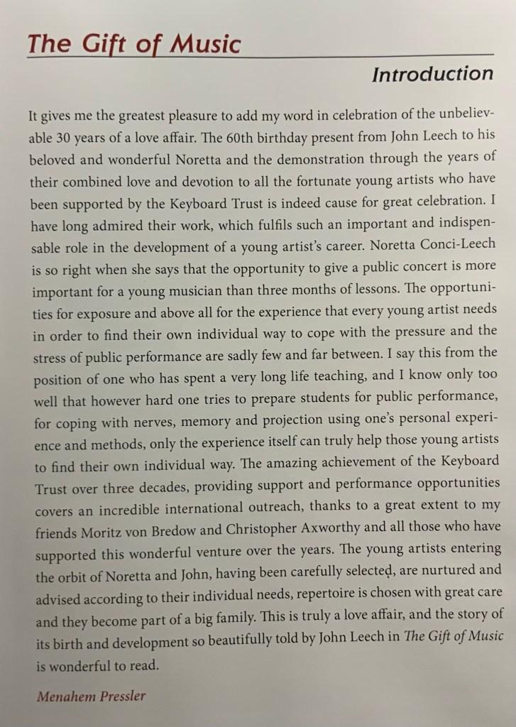 A surprise gift from a long standing friend and trustee of the Keyboard Trust,Dr Moritz von Bredow.A celebration of the enduring love that the founders of the Keyboard Trust have enjoyed for sixty years.By example sharing the Gift of Life so generously with so many talented young musicians and creating a true musical family.Offering concert opportunities,with their numerous musical friends worldwide,at the start of their career.All outlined in the book ‘The Gift of Music’ that John had so industriously formulated during the prolonged Pandemic lock down.Four of their favourite pianists were chosen by Moritz to give a fifteen minute recital in the music room in Chester Square that is known to so many musicians.There could easily have been four hundred but unfortunately time only permitted a selection that Moritz knew would give them such pleasure today.