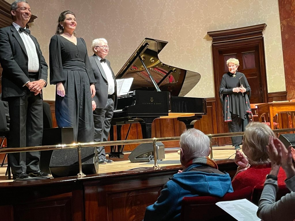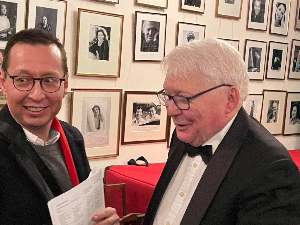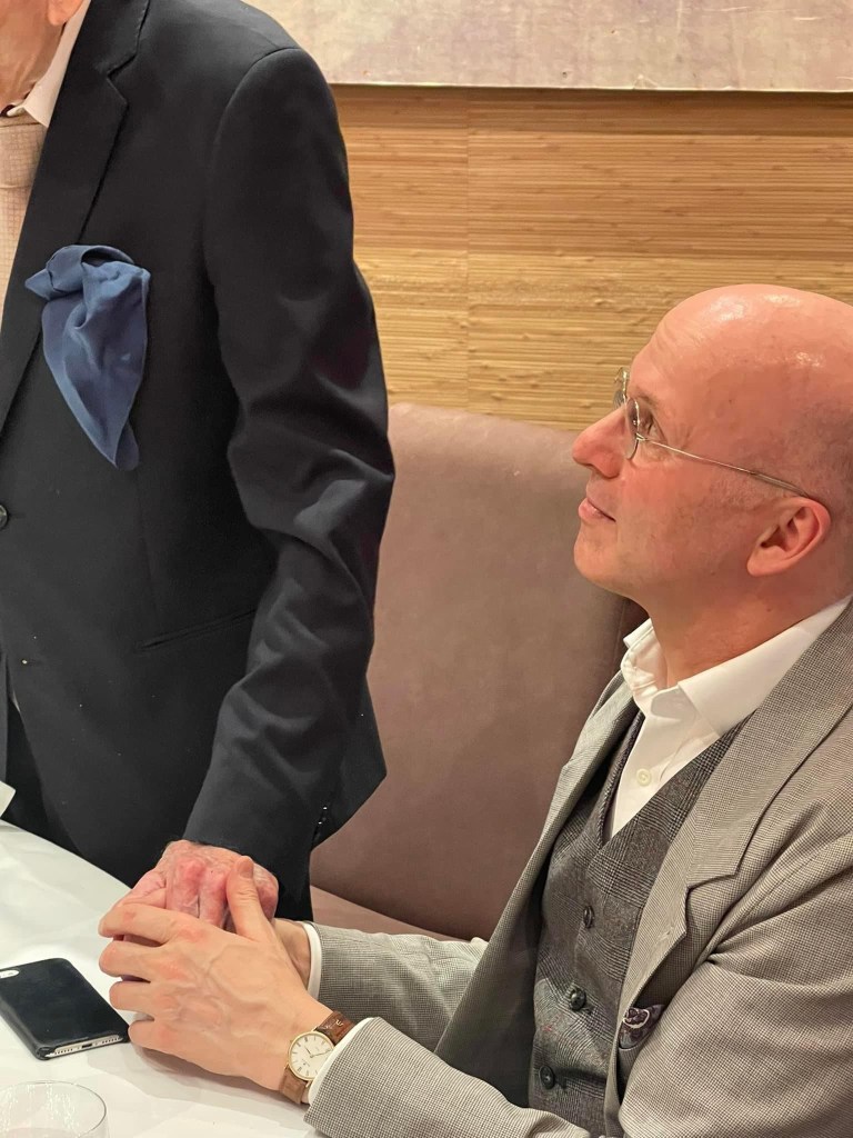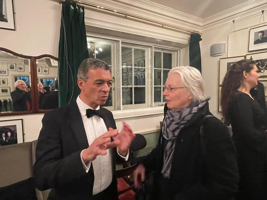 Elena Vorotko one of the three artistic directors nominated by John and Noretta on their retirement from their day to day running of the Trust.Elena has created a Historic Keyboard section within the trust and today played short works by Vivaldi/Bach;Bach/Cohen and Rameau.Explaining so poignantly that the transcription of ‘Liebster Jesu,wir sind hier ’ is a work that has followed her in all the most important events in her life.Mark Viner since making his Wigmore debut as a KCT prize winner,has made many CD’s all receiving five star reviews.He took both Rome and London by storm in concerts organised by the KCT and is fast becoming a very distinguished artist on the world stage .https://christopheraxworthymusiccommentary.com/2020/11/15/mark-viner-at-st-marys-faustian-struggles-and-promethean-prophesis/What better choice than to play Liszt’s rarely performed transcription from Gounod’s Romeo and JulietteEvie,Noretta and John’s absolute favourite ,and a born artist,who like Martha Argerich can do no wrong.Playing Beethoven’s miniature masterpiece op 14 n.2 with dynamic drive and insinuating lyricism .It was a work that Annie Fischer used to regularly include in her recitals playing with the same improvised intelligence and human warmth.A delightful poem that Evie had formulated just minutes before playing showed the same love to the ‘festeggiati’ as her playing did. https://christopheraxworthymusiccommentary.com/2022/02/25/evelyne-berezovsky-seduction-in-rome/Sasha Grynyuk who is like a son to John and Noretta and together with his wife Katya are always there in moments of need. Sasha regularly helps John with his computer studies every Friday after playing and working on a different work from his vast repertoire with Noretta .Today it was the Brahms Waltzes op 39 that showed off his great artistry. https://christopheraxworthymusiccommentary.com/2022/07/11/sasha-grynyuk-anniversary-recital-of-a-great-pianist-in-perivale/Lady Annabelle Weidenfeld who had left Menahem Pressler at home ,for health reasons, enjoying the celebrations of two other ‘youngsters’.Menahem,one of the great musicians of our time,recently celebrated his 99th birthday and had written a moving preface to John’s book :’ The Gift of music’Menahem Pressler with Dame Fanny Waterman in Oxford a few years ago A sumptuous luncheon had been organised by Moritz in a nearby restaurant.John being supported on both sides with loving warmth by Moritz and Noretta during his after luncheon speech of thanks An after luncheon celebration in Chester Square Mews – Moritz between John and Noretta Sarah seated between John and Noretta Dr Trevor Hudson talking to Sir Geoffrey Nice a trustee of long standing .Dr Hudson has been Noretta and John’s private doctor for the past sixty years .He was also,by coincidence,the trusted doctor of my old teacher Vlado Perlemuter and his companion Joan Floquart Booth. It was very reassuring to know from him that our ‘festeggiati’ are in good health and can look forward to many more celebrations! https://christopheraxworthymusiccommentary.com/2017/12/19/in-praise-of-joan-2/What fun was had by all .Our valiant general manger,Sarah Biggs,without whom this event certainly would not have run so smoothly …looking on is Dr Hudson’s wife,Sue,who expects a similar celebration in seven years time!Nice to see our two Russian pianists Evelyn Berezovsky and Elena Vorotko arm in arm as they pass from their mews concert to the luncheon table.Moritz to whom must go infinite thanks for masterminding this wonderfully heartfelt celebration Sasha Grynyuk with his wife Katya Richard Thomas the KCT administrator with Sue Hudson and Sarah Biggs.Poetically eloquent Dr Moritz von Bredow a true renaissance man and renowned pediatrician with hundreds of clients in his clinic in Hamburg.Thank you Moritz for such a memorable occasion