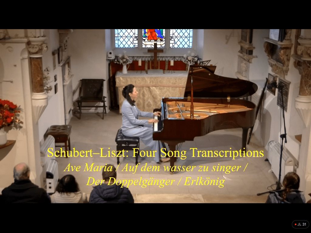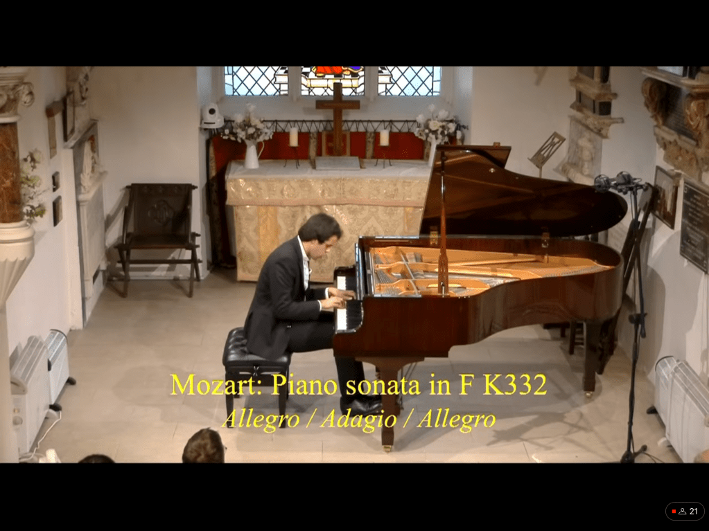 And so to the programme of a rather shy ten year old pianist.She has been studying from the age of four in 2017 with Gianni Maria Ferrini whilst her parents were here from Japan on diplomatic duties.Now transferred back to Tokyo she continues her studies on line with occasional visits to her Professor in Rome for essential one to one lessons.As Maestro Ferrini said it is the experience of playing in public from an early age that is so important.But he is also aware that this is work in progress and to be treated as such even though it is nice to receive applause from an appreciative audience.A child prodigy has to be treated with care as extraordinary gifts must go hand in hand with the normal activity of a child growing up as naturally as parents and teachers can offer.The difficulty is to pass from a child to an adult,as maestro Ferrini is very much aware.He is treating her public performances as an essential learning curve and not as a circus act!