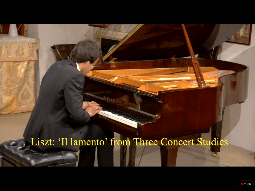 Three Concert Études (Trois études de concert), S.144 is a set of three Etudes by composed between 1845–49 and published in Paris as Trois caprices poétiques with the three individual titles as they are known today:Il lamento (“The Lament”), La leggierezza (“Lightness”), and Un sospiro (“A sigh”)Il lamento is the first of the études and is among Liszt’s longest pieces in the genre. It starts with a four-note lyrical melody which folds itself through the work, followed by a Chopin like chromatic pattern which reappears again in the coda.Although the piece opens and ends in A-flat major, it shifts throughout its three parts to many other keys, A, G, D-sharp, F-sharp and B among them.