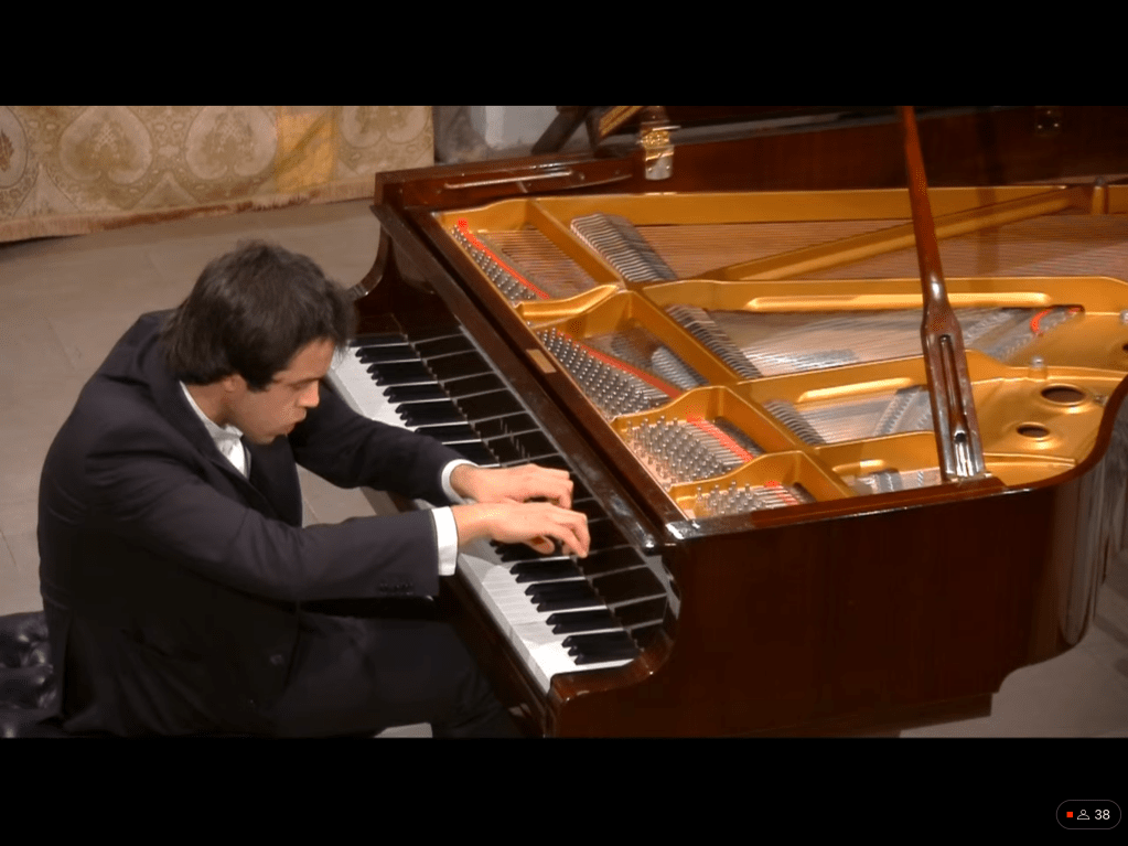 The opening theme was played with an unusual sensitivity and very subtle flexibility that immediately caught my attention.It was to be held with baited breath until the final tumultuous notes of the Fugue.Every variation was a revelation,as if the notes were still wet on the page,The silence too before the music box variation n. 22 towards the end was played as if in a wondrous dream of nostalgic recollection .It was the magic touch of a deeply committed artist.The first four variations were played with a liquid legato with cascades of arabesques in the second and deeply expressive fourth.Awakened by demonic octaves: dynamic and impressive as they burst onto this seemingly pastoral scene.Immediately contrasted with the mellifluous mysterious meanderings of the sixth and the very light rhythmic drive of the seventh and eighth.A subtle build up in intensity led to declamatory octaves phrases each one disappearing to oblivion with such nonchalant ease and grace.Cat and mouse delicately chasing up and down the keys with ‘kittenish’ playfulness.Delicacy and beauty followed and led to the gentle duet between fairy horns and flutes.There followed grandeur but with luminosity and very personal inflections.The pointed deep bass notes of the seventeenth was followed by the gentle pastoral cascades of notes in the eighteenth leading to the beautiful lilting ‘siciliano’ of the nineteenth .A very demonic build up followed with dry menacing staccato notes driving ever more excitedly with swirls of sounds like the west wind blowing.And after such tension the triumphant opening theme in all its glory ,worthy of Busonian exultation,came as such a cathartic relief.The bare notes of the fugue were like a window suddenly being opened and letting the blazing sun light dazzle us with Samson’s unrelenting technical prowess.The Great Gate of Kiev comes to mind as the chimes first in the right hand are answered by the left and accompanied by transcendental technical high jinx.Played with extraordinary architectural command of startling authority where even here he found a sense of colour and contrast that kept us on the edge of our seats until the final majestic chords.