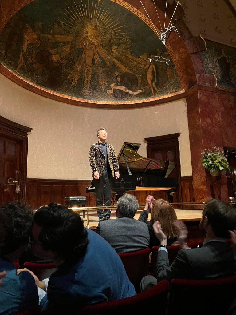 Playing in a theatre where the greatest musicians of our age have played in the past .From Guido Agosti – a student of Busoni to Vlado Perlemuter a student of Cortot mentored by Ravel an Fauré.In fact it was Gianni Maria Ferrini who brought his ten year old student Himari Sugiura to have one of her first concert experiences under his careful supervision in a hall where he as a teenager had heard Perlemuter playing Ravel .
