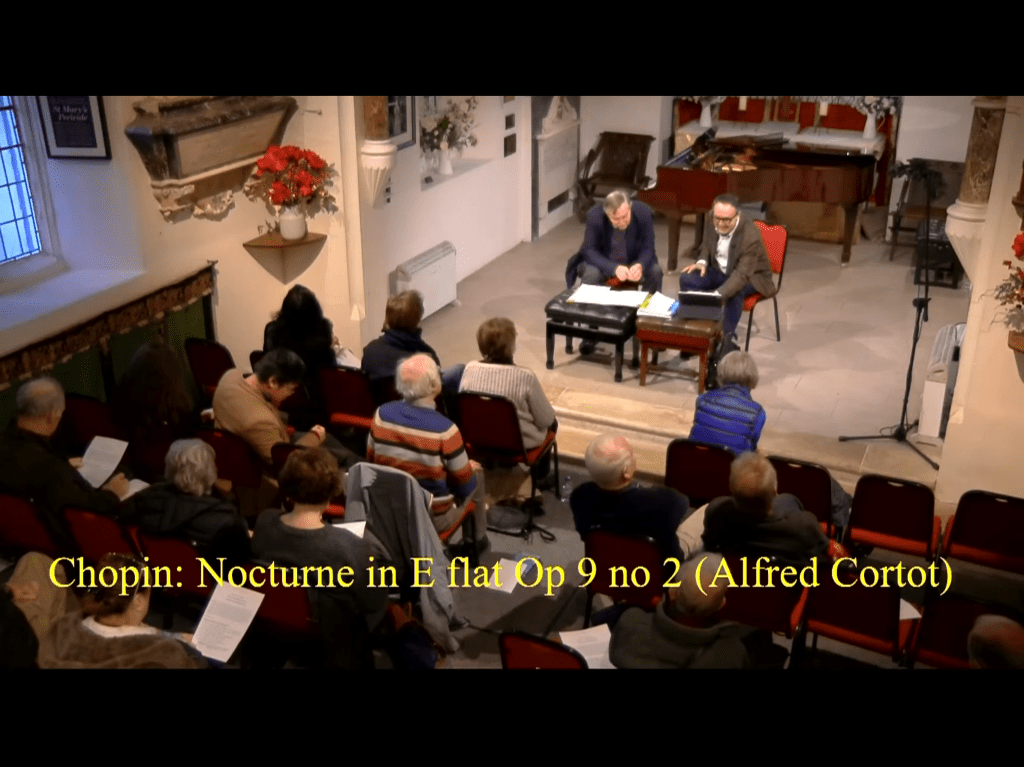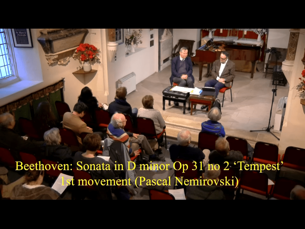 A fascinating conversation between Dr Hugh Mather and Pascal Nemirovski.But it was the recordings of his own performances in his formative years that were a revelation.Of course he encouraged us to listen to Cortot to show that there is no one way of playing the piano.As saying ‘thank you’,which the human voice can say with so many different inflections.The last word today was in fact given to the sublime voice of Janet Baker as an example of what we are all striving for.Listen ,listen ,listen was his message.In fact it was Shura Cherkassky after listening to the first recital of a complete series of the Beethoven Sonatas from a top prize winning pianist ,who turned to me and said I don’t think he is listening to himself!Just as Pascal charmingly told of Glenn Gould practicing with the vacuum cleaner on so he would have to strain to hear the musical sounds he was searching for on the piano.Of course Pascal touched on the subject of technique and the importance of correct posture that would not impede the energy from flowing through the fingers into the notes.But above all to think of the sound you are striving for before looking for the note on the keyboard.A fascinating conversation of great charm and ‘joie de vivre’ of an artist deeply in love with music and the idea of sharing this great love and experience with others.What better way to celebrate his extraordinary career than to hear five of his remarkable students ,three of whom have played on this very stage and Emanuil Ivanov ,winner of the 2018/19 Busoni Competition ,who will play on Valentine’s Day.