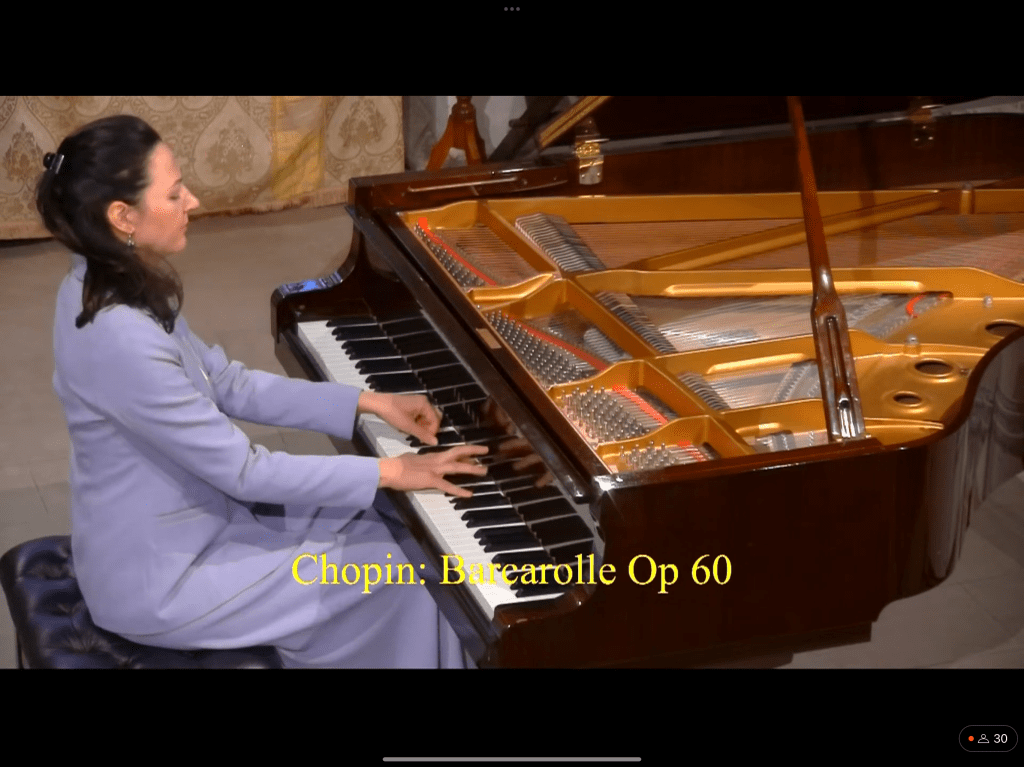 It was obvious from how she played the opening bass octave of Chopin’s Barcarolle that we were in the hands of a true musician.Not a declaration of intent but more the opening of a secret chest of jewels.And there were certainly ravishing sparkling sounds in this great song that Chopin had so miraculously penned towards the end of his short life.The golden sounds of the ravishing central nocturne effect that Perlemuter described to me as ‘here we are in heaven’.Sacrificing passion and showmanship for a more inward beauty as she brought this great ‘postcard from Venice’ to a ravishing end.