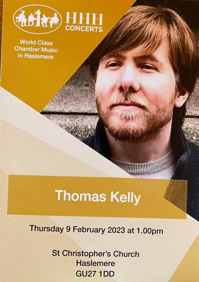 A sensational recital by Thomas Kelly in the new lunchtime series in Haslemere organised by Stephen Dennison in partnership with the Keyboard Trust.