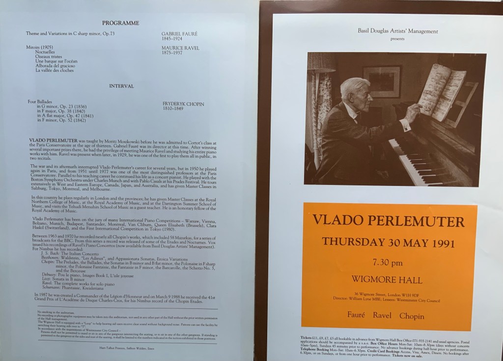 I remember helping Vlado Perlemuter enter that door onto this very stage when in his 90th year he gave his last concert.He played the four ballades as one with a weight and real legato that relayed the magic of Chopin to his adoring public.The distinguished pianist Irene Kohler came back stage in tears.I pads did not exists and even if they did Vlado knew the scores after a lifetime of living with them.Joan and I waited for him backstage as we had always done in the Ghione Theatre in Rome from when he made his Italian concert debut at the age of 81!Right to this last appearance entering that door was always like going to the guillotine!