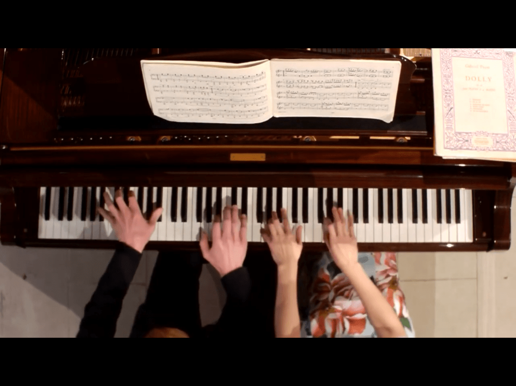 Four hands!Means just that but also four feet .It also needs a policeman to decide the logistics of the different height of the stool and also who is to turn the pages and when.I remember Benjamin Britten ‘complaining’ that in his duo with Richter he would suddenly find two great feet on his as they fought for the pedals.In the passion of the moment Richter’s great temperament took over from Britten’s more gentlemanly control.The most important thing of course is a sense of balance that allows the musical line to shine through.These are all things that need real musicians listening with the sensitivity and humility that is necessary for all chamber music ensembles.