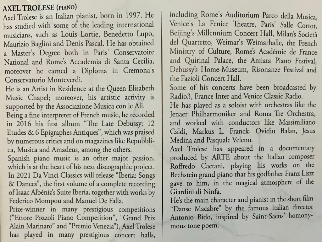 n.1 and 2 that unleashed the depth of sound and ravishing sense of colour from this young poet of the piano,together with his aristocratic sense of harmonic structure.
