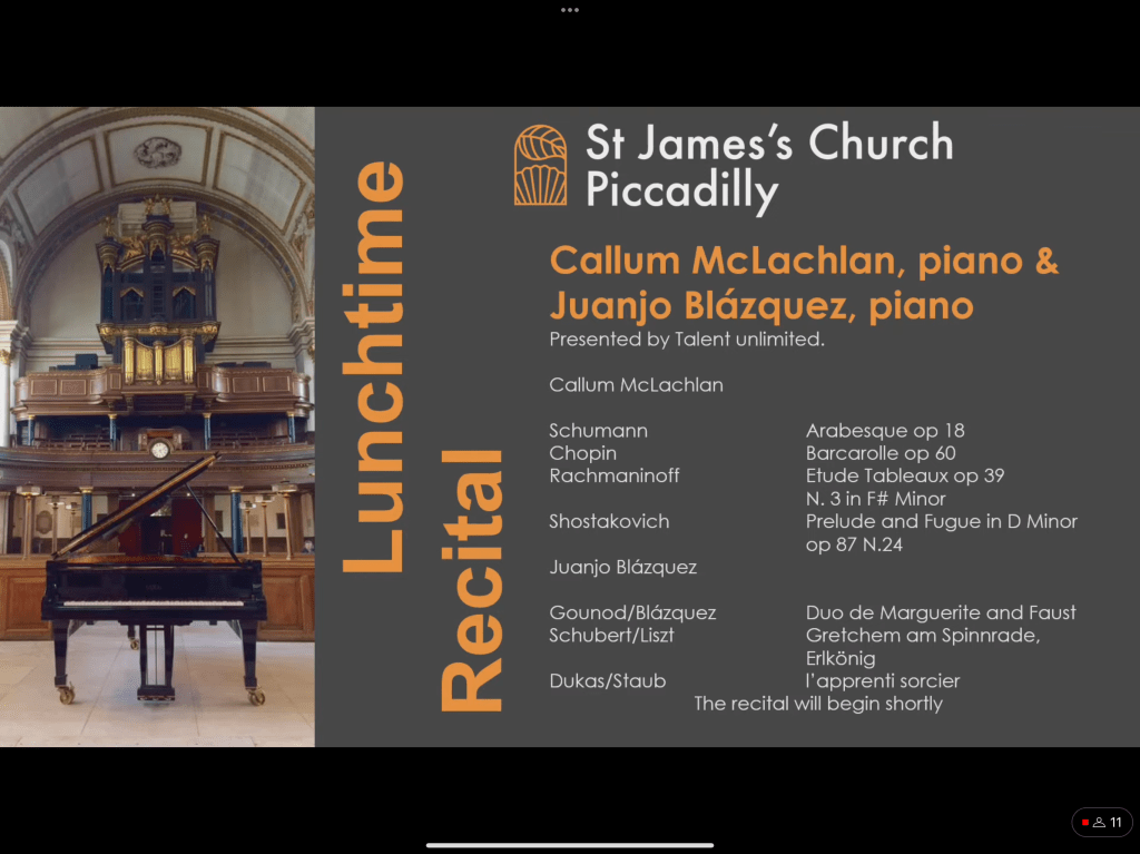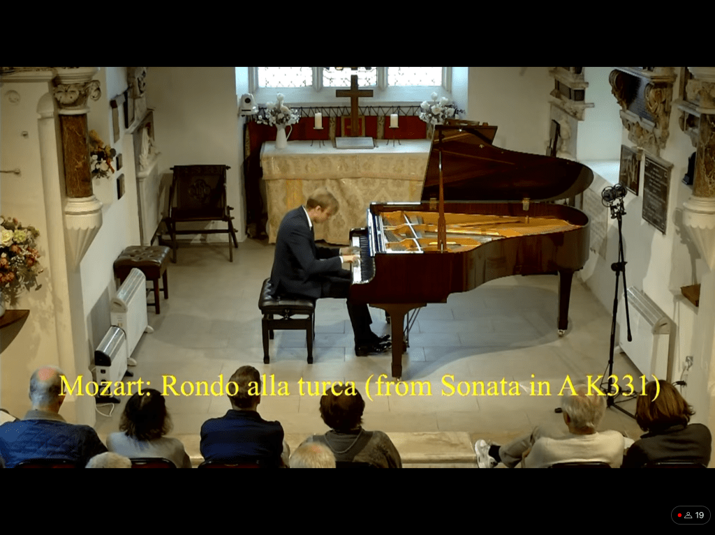 Parvis Hejazi in recital with Mozart,Shostakovich,Brahms .Some remarkable musicianly performances from a true artist.Always a great showman but one who has learnt that the message of music is the greatest show that one can share.A performance of Mozart C minor Sonata that was both dramatic and tender.
