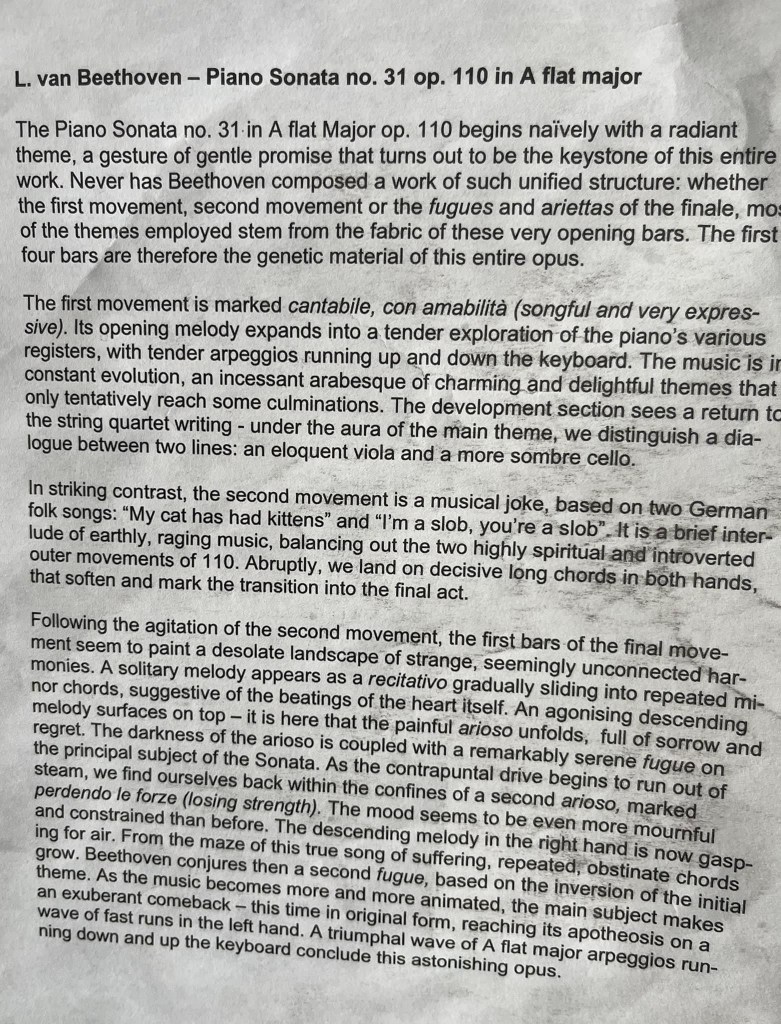 A single encore of Couperin who’s sublime simplicity was the ideal antidote to Brahms’s passionate effusions and the allusion to the Mysteries of Bacchus led very nicely to the post concert drink.
