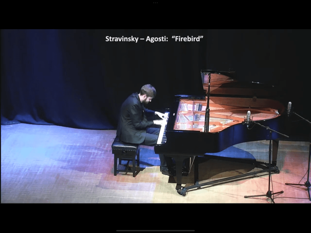 A transcendental performance of Agosti’s famous 1928 transcription of the ‘Firebird’.Victor threw himself into they fray from the very opening notes with breathtaking drive and scintillating virtuosity-a truly Infernal Dance! There were beautiful sounds of orchestral colour in the Berceuse with a kaleidoscope of colours appearing over the entire keyboard.But it was the ravishing beauty of the appearance of the Firebird in the finale that was truly breathtaking.The build up to the tumultuous final bars was astonishing as the excitement mounted to a frenzy of unbelievable virtuosity and exhilaration.