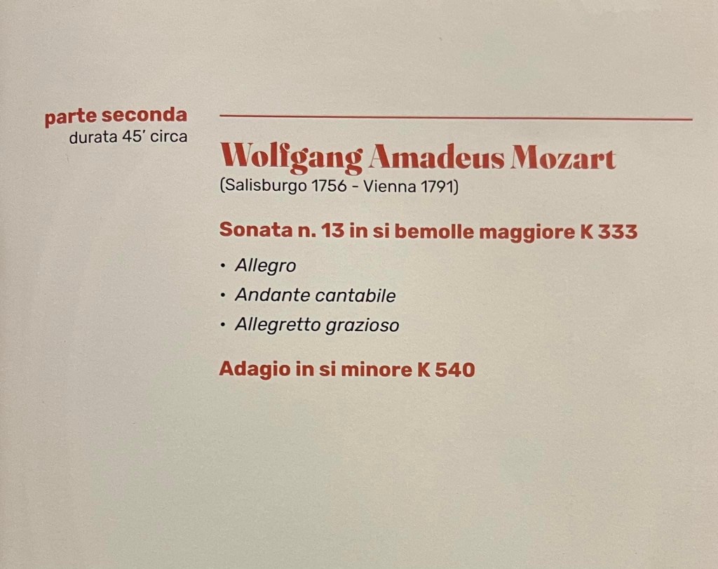 In 2022 he undertook an intense concert activity making his debut not only with the Orchestra of the Conservatory “B.Maderna di Cesena” at the Teatro Verdi in Cesena with 1053 by J.S.Bach, at the Sala “Marco Biagi” in Bologna, at the Circolo Culturale “G. Fantoni” in La Spezia and at the “Music Hall” of the University of musical semiotics in Helsinki, under the invitation of the famous maestro Eero Tarasti.