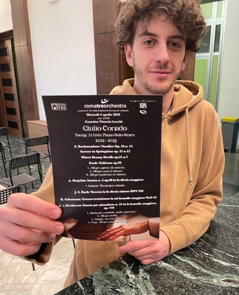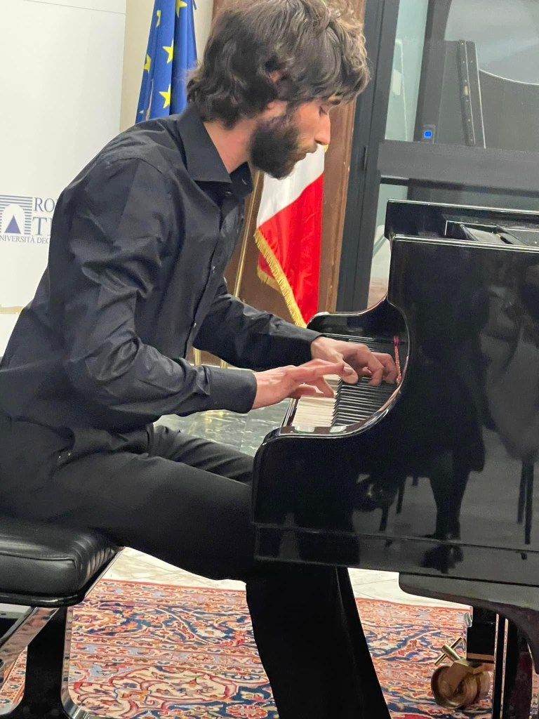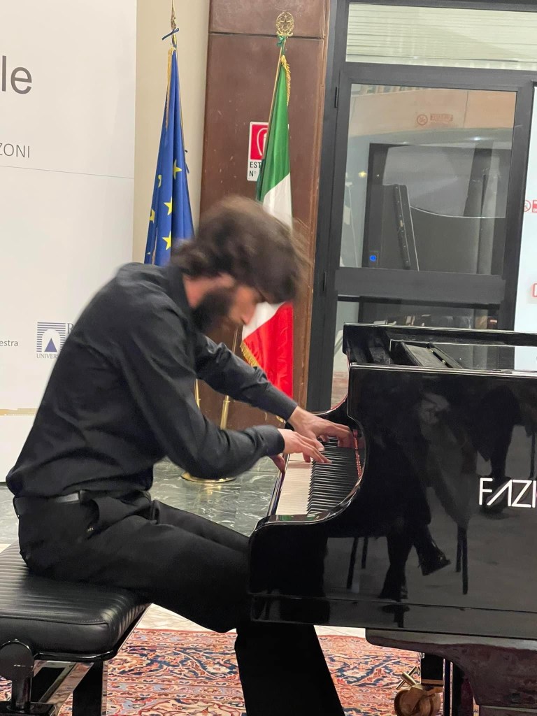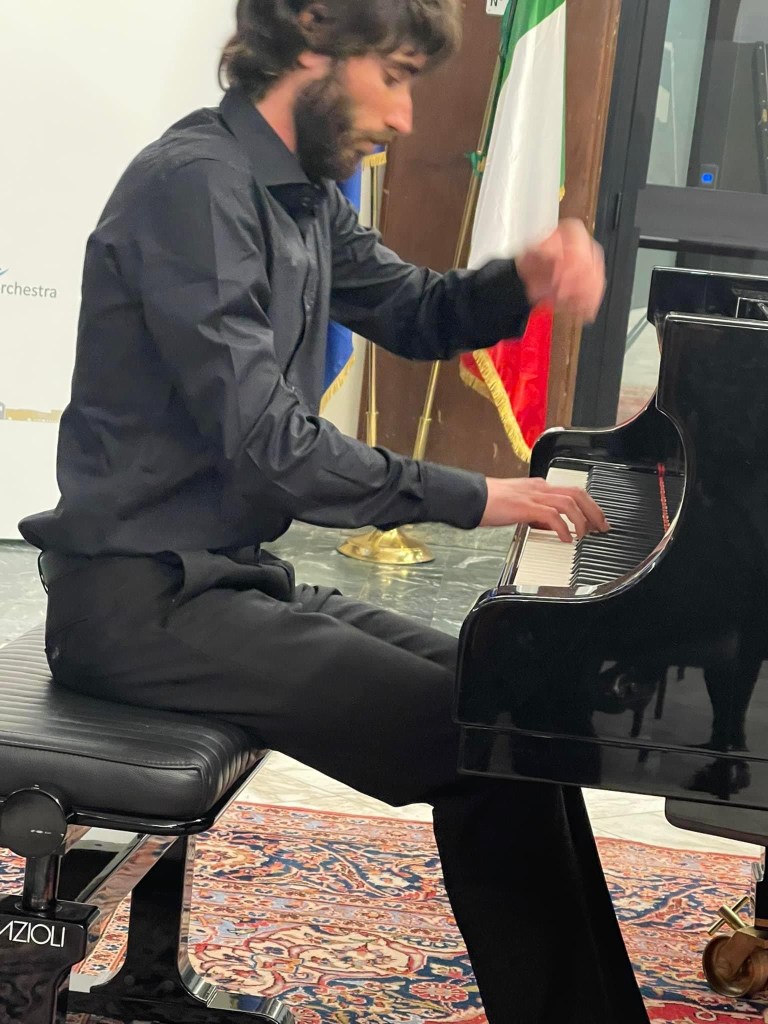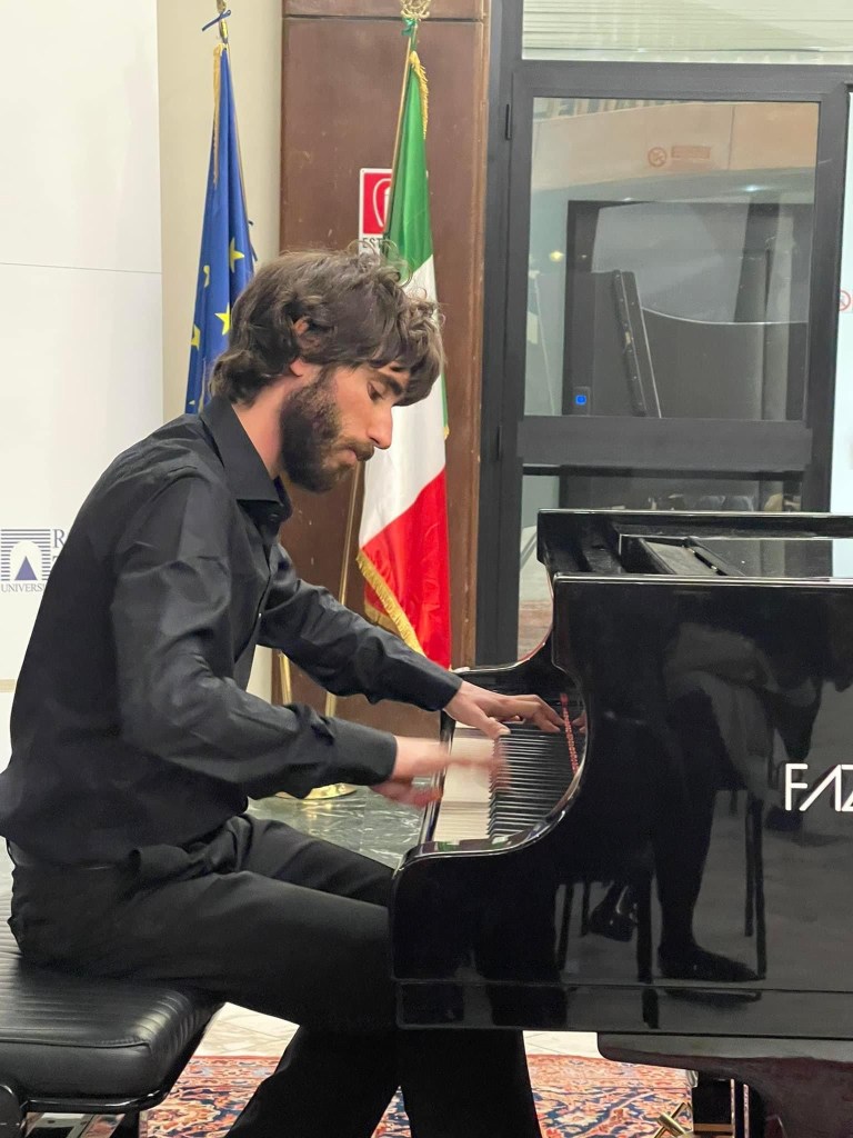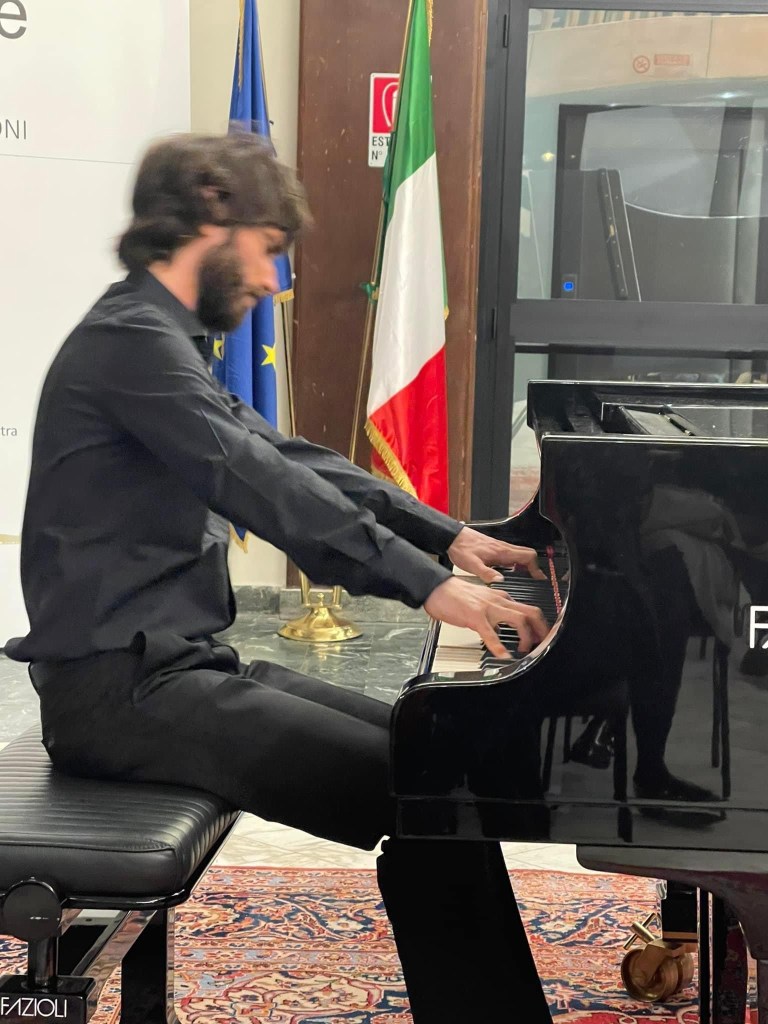 In2019 he graduated in piano at the Rimini Conservatory with 110 cum laude.