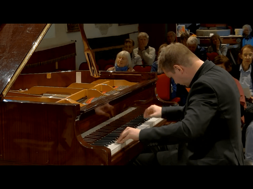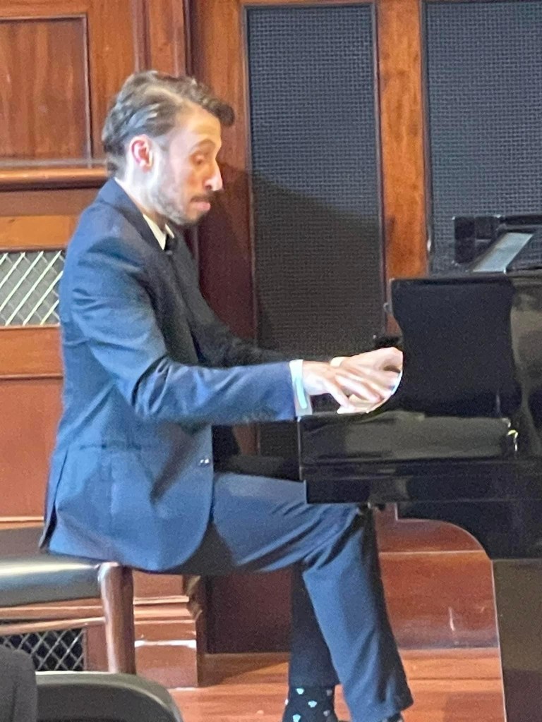 The natural movements that followed the contours of the music allowed him to seek out sounds without any ungrateful hardness even in the most challenging passages that abound in a work that the composer himself said : ‘May the devil play it ‘.The fullness of rich sound in the solemn Adagio – The Wanderer – was remarkable for its sonority.I even found it a little too important a statement but was then led by Pablo to the magic of the variations where streams of golden sounds just poured like water over the keys leading to a climax worthy of the mightiest of Beethoven only to disappear in a series of vibrations all so similarly found in late Beethoven.The scherzo ,presto,was played with a clarity and sense of dance that created just the contrast and lyrical interlude before the tumultuous final explosion in preparation for the Allegro fugato.He embarked on the Allegro with an urgency almost in two instead of four.But we need not have worried as Pablo is also a great virtuoso as he fearlessly led us to the tumultuous conclusion with no sign of collision or mishap.A remarkably exciting conclusion to a superb performance.