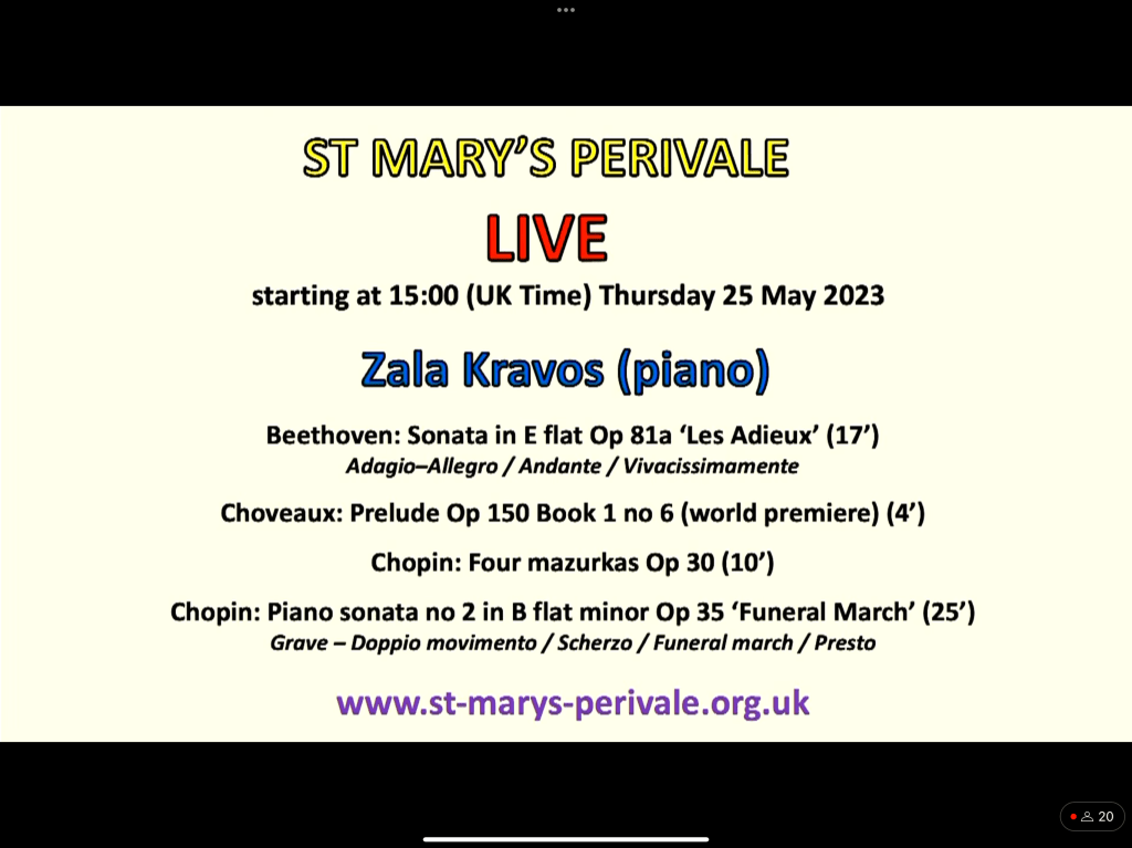 Wonderful to see ‘our’ little Pablo who had been chosen at 16 to play for Noretta and John Leech in Steinway Hall in London when he became part of the family of the Keyboard Trust.Advised and nurtured by them,this highly talented young teenager was taken under the wing of the great pianist and teacher Eliso Virsaladze who in seven years of intensive study turned a talented young pianist into an artist ready to grace the world stage.It was a joy to see this now established artist sitting low at the keyboard with his hands like eagles ready to pounce on its pray.His long fingers and noticeable arch of the hand extracting ravishing sounds with such sensitivity and intelligence from a black box of hammers and strings.