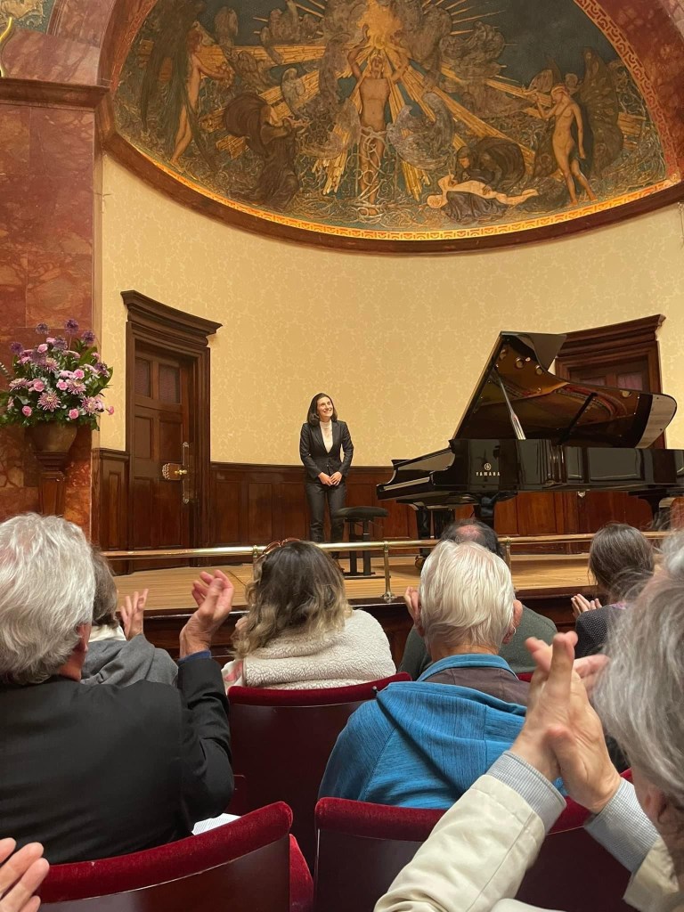 A much later work ‘Forest of the Amazon’ is a song cycle taken from his Symphonic Poem and was sung so eloquently by the mezzo soprano Marina Melaranci.Her beautiful voice soared into the rarified air and was a refreshing breath of fresh air after the dynamic urgency and declamations of ‘Abaporu’.The voice and piano in perfect harmony as they revealed the subtle beauty and charm of these four evocative songs.Even more memorable was the encore that Marina was invited to offer on behalf of all the musicians that had taken part.Her voice ravished and seduced as Bachianas Brasileiras n. 5 by Villa Lobos was allowed to float into the highly charged air and bring such bewitchingly subtle emotions after the breathtaking virtuosity of Schubert’s monumental -‘ almighty’ Wanderer Fantasy.