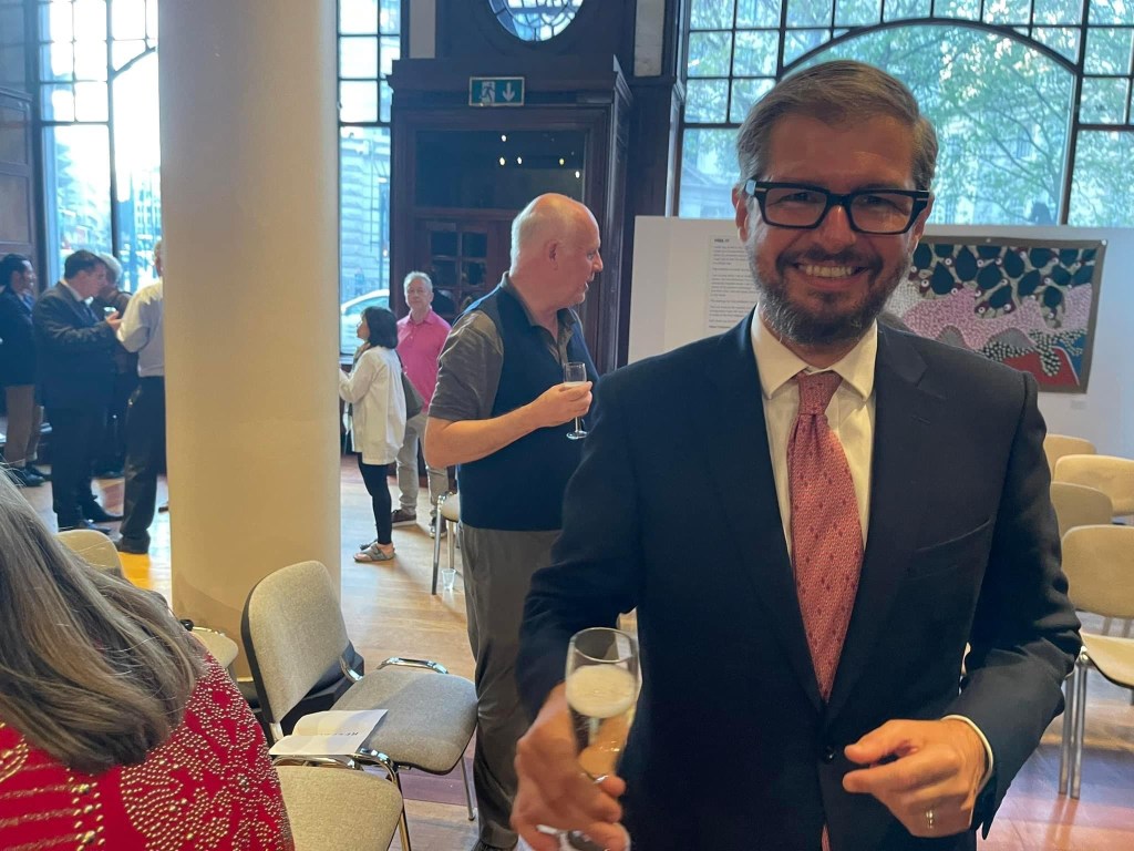Pablo Rossi and friends with The Tree of Life at the Brazilian Embassy in the beautiful ex Cunard Hall in Trafalgar Square .