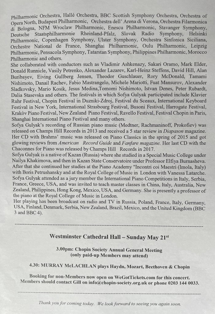 Sofya Gulyak at the Chopin Society in London with playing of mastery and poetry.
