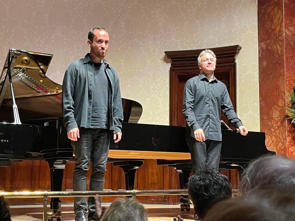 Alexei Volodin chose the Schumann Arabesque as his solo contribution to a two piano concert between friends.A much brighter sound had me thinking it might be a Fazioli piano instead of Levit’s Steinway.On closer inspection in the interval it turned out to be a twin Steinway.Playing of a stylist who had to ‘do things’ rather than let the music speak for itself.Some beautiful effects trying to find a new inflection for Schumann’s hauntingly returning rondo theme.An ending etched with a bright sound that made me think it must be a different instrument as it became an epic drama instead of a luminous dream.