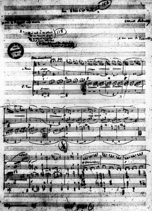 is dedicated to Serge Koussevitzky, a musician friend from allied Russia.Debussy prefaced the movement by an excerpt from Barbier and Carré’s libretto for Gounod’s Roméo et Juliette The motto translates to “He who stays in his place and does not dance quietly admits to a disgrace.”Debussy may have found himself a disgrace as he could not participate in the “dance” of fighting for France due to his illness. The second movement is marked Lent. Sombre and is prefaced by a passage from Villon’s Ballade contre les ennemis de la France. Debussy had set some of the ballads by the 15th-century poet to music. The quotation is chosen from a ballad “against France’s enemies”.It has been called a political comment of unexpected intensity.The German hymn “Ein feste Burg “by Martin Luther is quoted in the foreground, with a focus on its military aspect, while the French Marseillaise appears almost hidden.The third movement is marked Scherzando and is