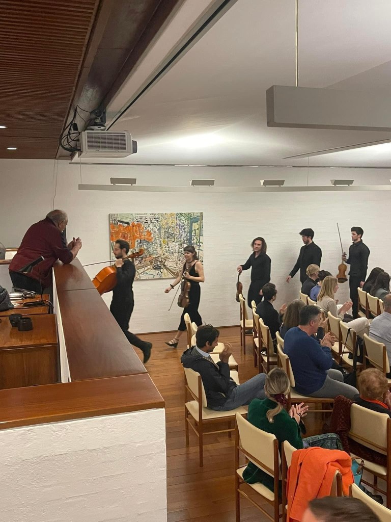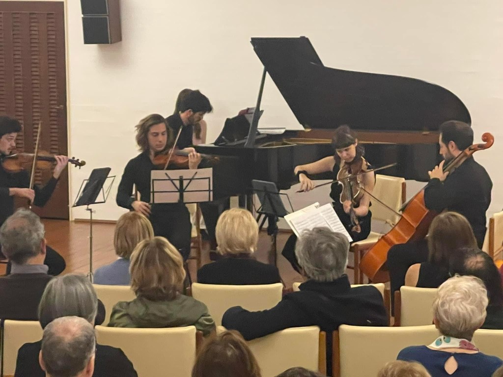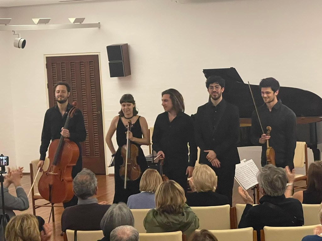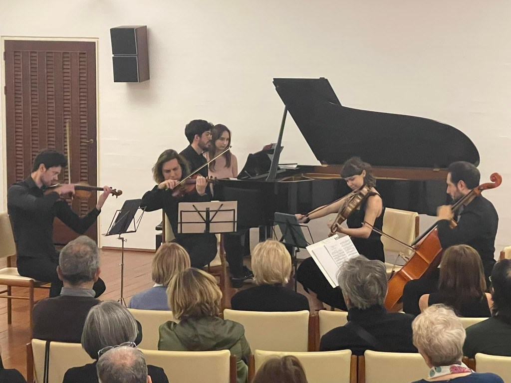 Daniele Sabatini’s beautiful romantic violin playing with such eloquent discreet slides was just one of the wonders in a superb performance of the piano Quintet.Alessandro uniting with Carlotta Libonati to reply to the passionate beauty of both Daniele and Enrico Massimiliano Cuculo.But they were all united around Ruben who gave a musicianly performance integrating and creating a sumptuous whole with his colleagues.The actual technical difficulties disappeared in a picture of passionate drive and a real ‘explosion’ of sumptuous music making .