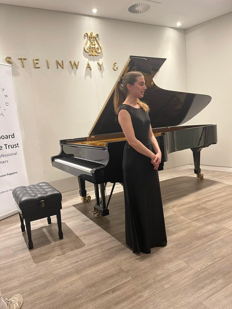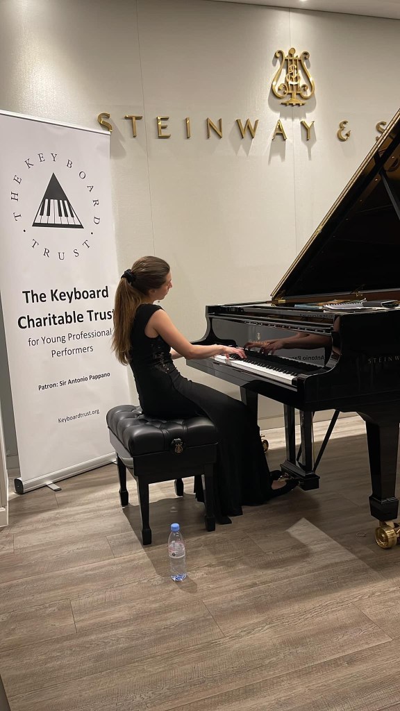 Giulia has lived with this music since childhood as both her parents are professional flautists in her home city of Florence. A magic ‘faune’unjustly neglected in the solo piano repertoire. This is not the case of Liszt’s dramatic depiction of Wagner’s Liebestod that closed Giulia Contaldo’s short programme for the Keyboard Trust. Where Debussy had been all perfume and atmosphere ,Wagner was all passion and seduction. Both played with authoritative musicianship and transcendental technical command. She did not quite find the thread weaving its way through the knotty twine of ‘Des Abends’ that opens Robert Schumann’s Fantasiestucke.It was obvious later that it was because she was keeping the simplicity until ‘Warum’which was played with the same aristocratic poise and beauty that I remember from Rubinstein. She too obviously knew this was the heart of these eight contrasting pictures because she chose to play it again as an encore with even more intensity. A performance of passion and superlative technical control from a pianist who is an intelligent musician who could not only see the intimate detail of Schumann’s tale but could also see the architectural shape of the whole suite.