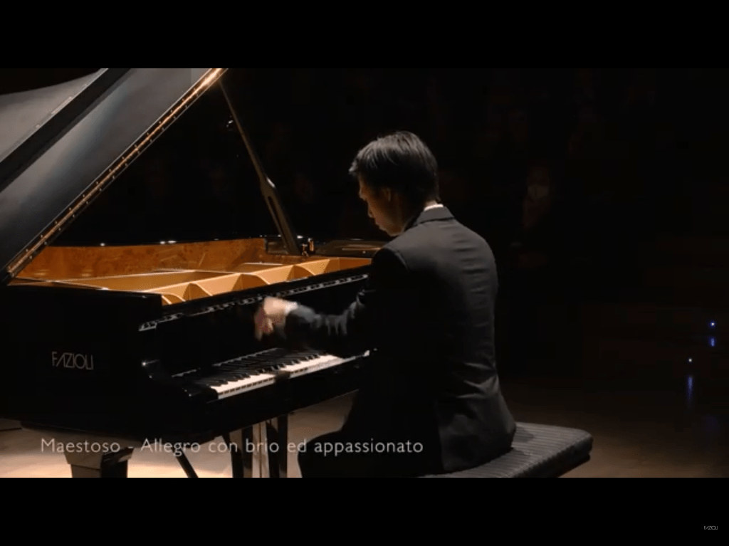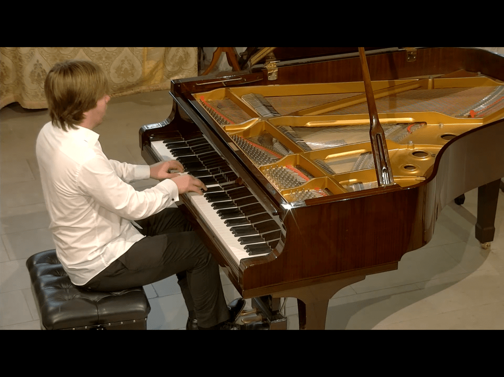 What better work to choose than the ‘little’A major Sonata by Schubert ( Lupu in Leeds had chosen the ‘little’A minor Sonata in the first round).One of the shortest of Schubert’s Sonatas with a lyricism from the first to the last note where the ‘sturm und drang’ of the age had been translated into a pastoral outpouring of simple beauty.There was timeless lyricism to the opening in Simone’s performance and although he did not have the sound palette of Lupu (that was more of Richter than of Solomon) there was a beautiful fluidity and simple intelligent musicianship to all he did.Even the strident question and answer of octaves was incorporated into an architectural line that made such sense and never disturbed the musical flow for a show of empty virtuosity.The Andante was profoundly expressive but with a luminosity of sound that allowed the music to speak with such disarming simplicity.The Allegretto had great rhythmic energy and a ‘joie de vivre’ that was indeed exhilarating.A performance where the music was allowed to speak for itself played with a technical command of art that conceals art.
