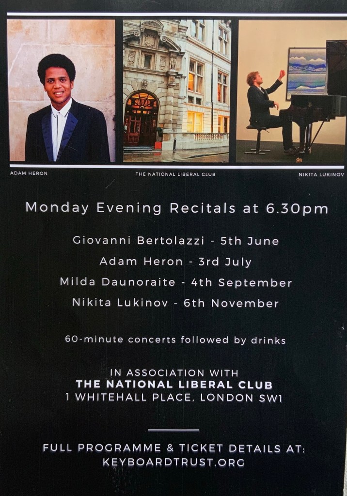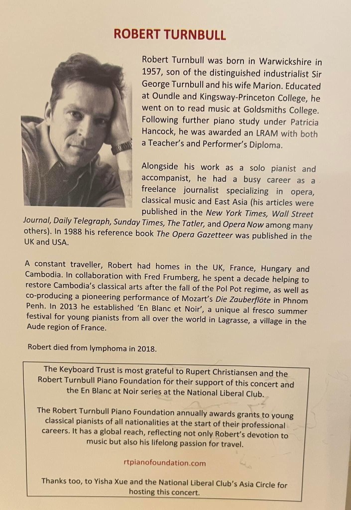 Another memorable occasion for the second in the series of six recitals presenting aspiring young pianists by the Keyboard Trust together with the Robert Turnbull Foundation at the National liberal Club for the Asia Circle directed by Yisha Xue
