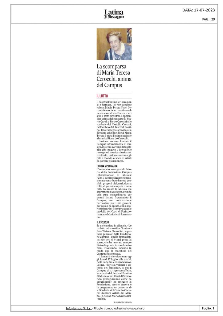 I remember Andrea’s mentor Luciano Berio spending hours with three piano tuners in the Ghione theatre in Rome desperately trying to find the right vibrations for a work that was based solely on that.I remember him saying after the last one had left that he would just have to put up with what the tuners had been able to do!This was before Mauro Buccitti’s time of course!Shura Cherkassky a pianist who gave over ten recitals in Rome for us was invited to Berio’s home after a recital he gave in Empoli.It was there that the prodigy Andrea Lucchesini performed Berio’s ‘Wassermusik’ much to the admiration of one of the leggendary stylists of our time.