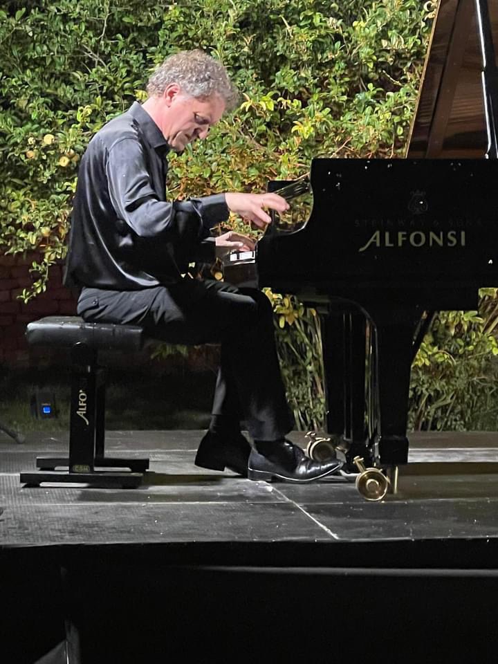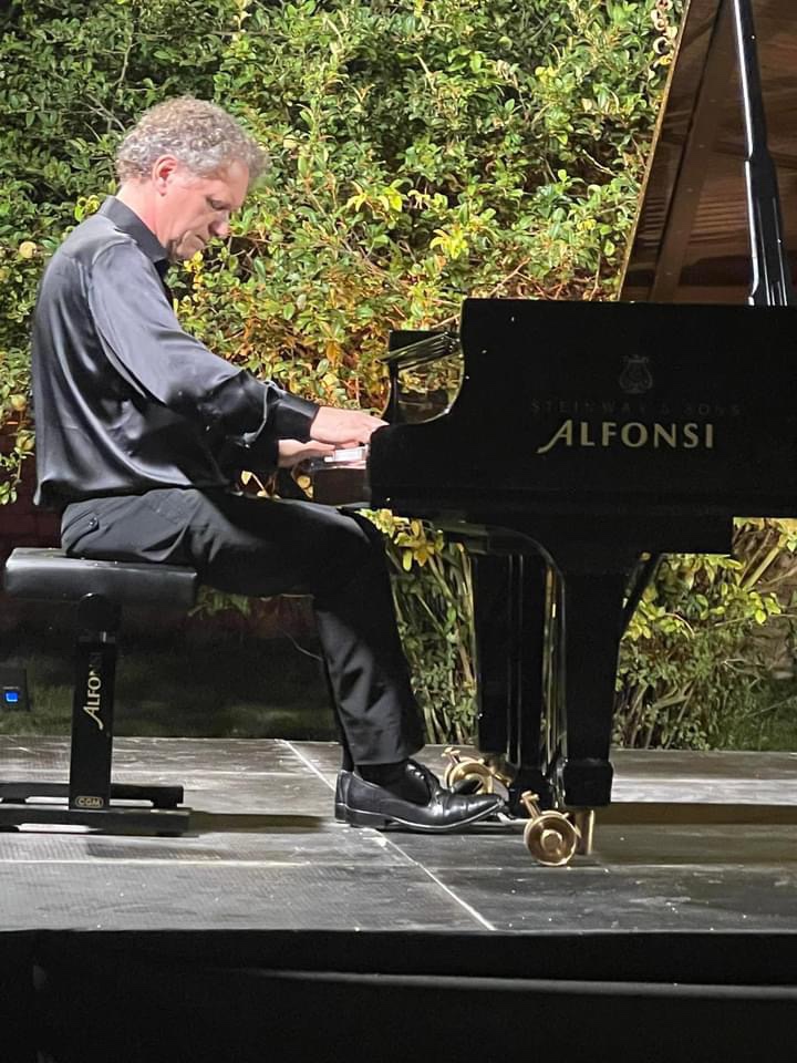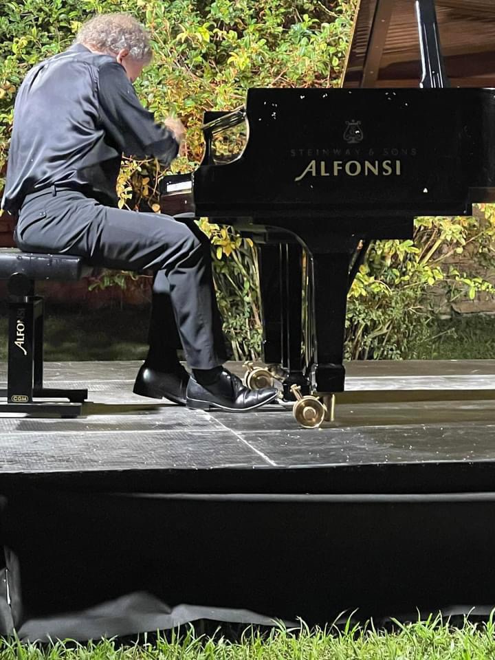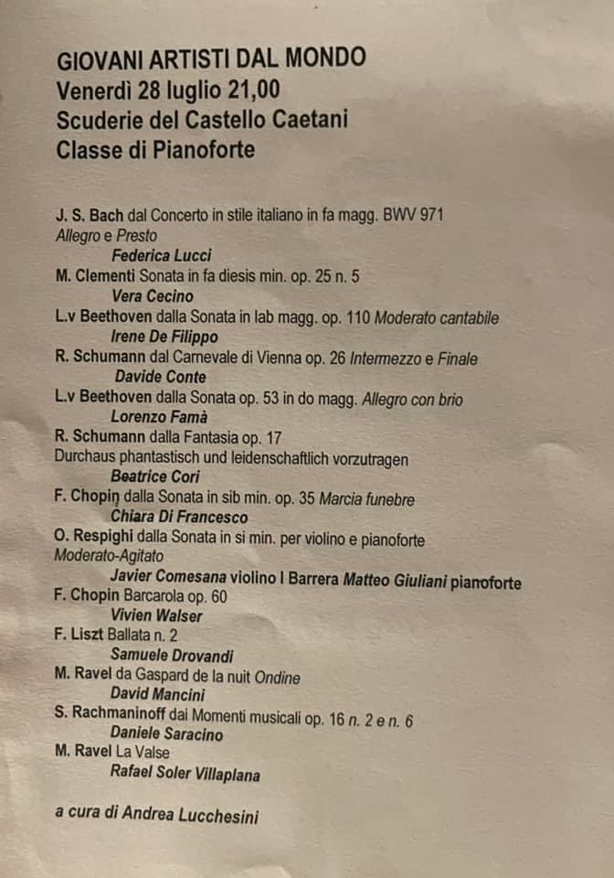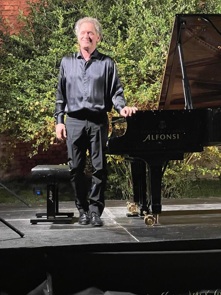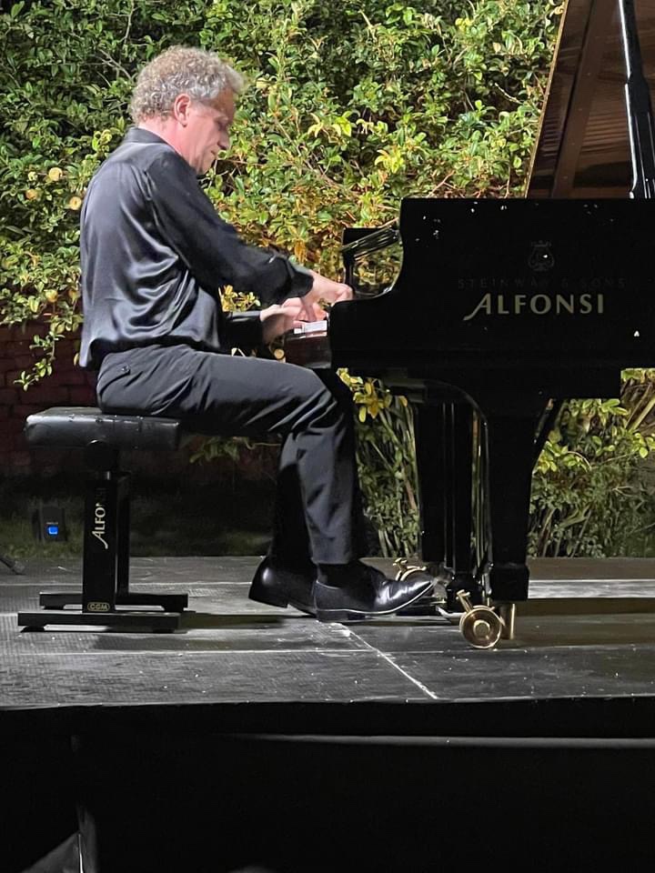 The supreme stylist Andrea Lucchesini managed to calm even the wildlife that engulfed him as he enchanted and seduced us with the ravishing sounds of an artist who has delved deep into the soul of the music he plays and can transmit its message directly and simply .He generously shared with us the inner secrets of sublime music making in the magic atmosphere of the Gardens of Ninfa.