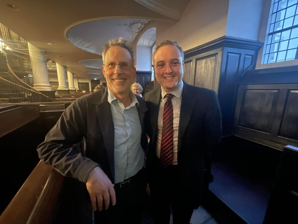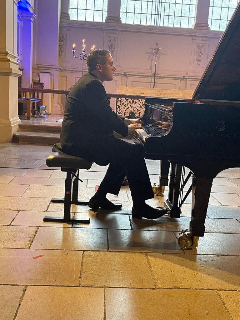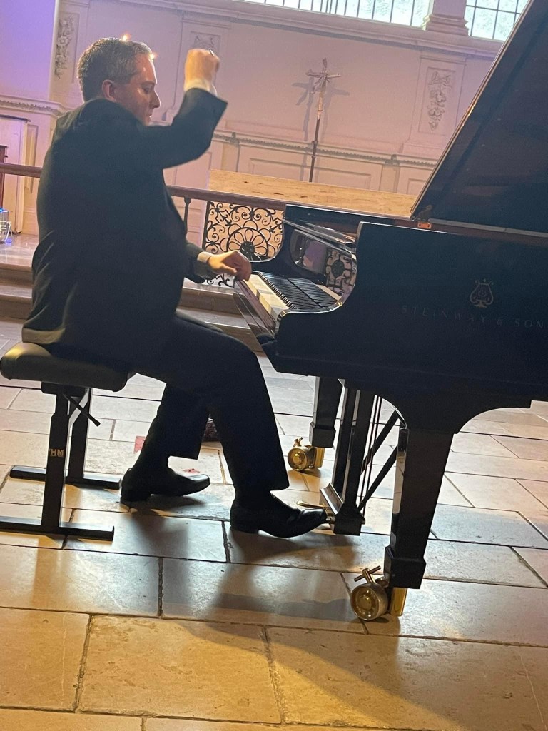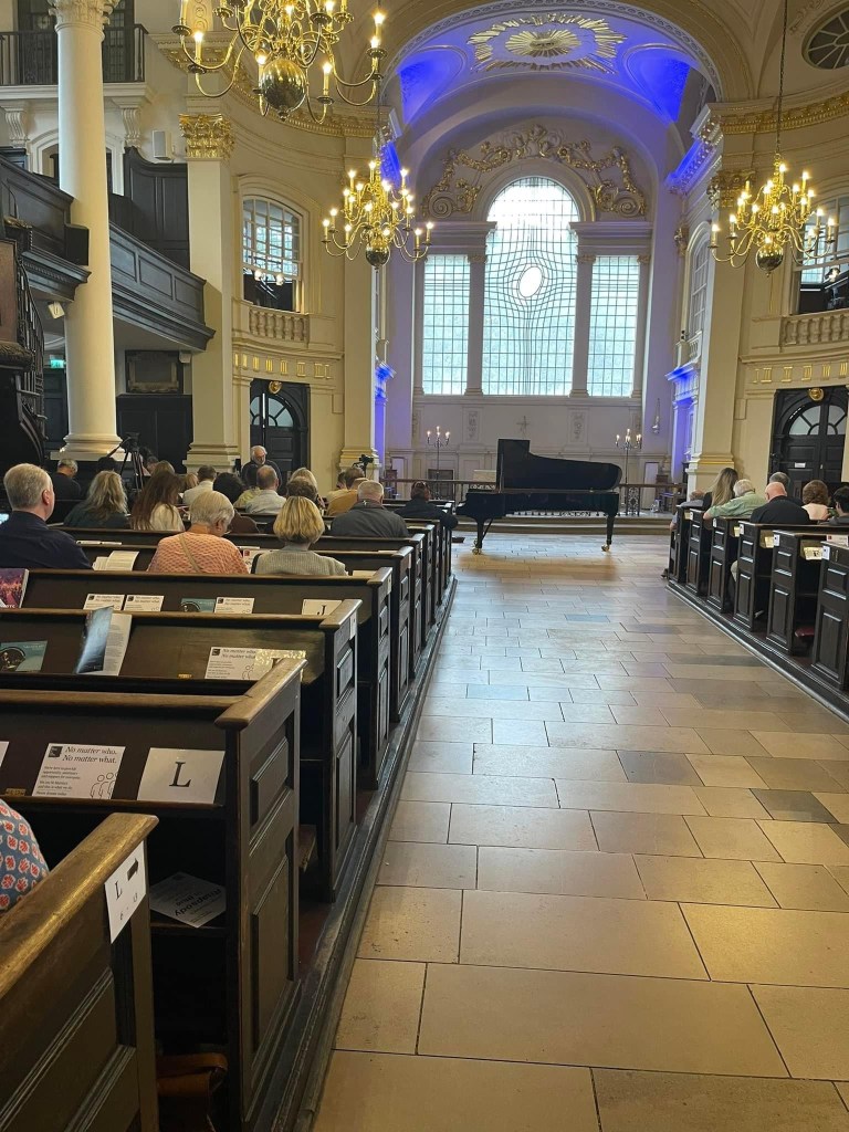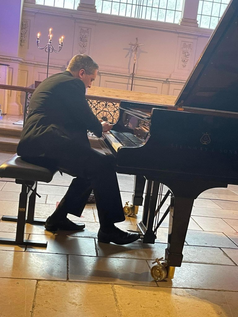 I am now split between Rome and London and being a retired gentleman can enjoy both without having to worry about organising the day to day running of a theatre in Rome any more.I remember very well the piano at St Martin’s in 1972 that I had played and had been bequeathed to St Martin’s by Sir Thomas Beecham.It now stands in St Lawrence Jewry and in its place stands a gleaming new Steinway concert grand bequeathed to the church by a wealthy benefactor.It is nice to know that our host John Landor is also an Associate of the RAM like me and the compliments he gave to Tyler after his recital were of a real discerning musician.