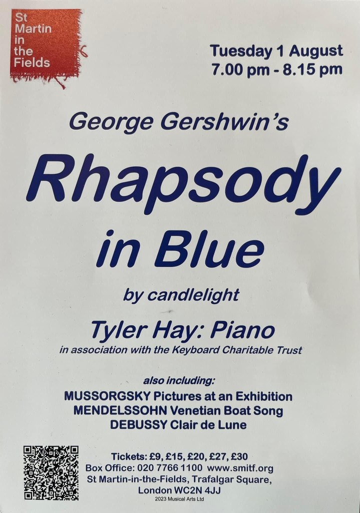Gershwin’s classic ‘Rhapsody in Blue’ ended this short recital in full swing style with beguiling innuendo and teasing rhythmic energy.
