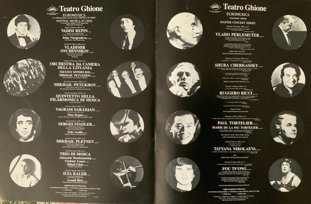 Our theatre next to St Peter’s Square became the Wigmore Hall of Rome where we were able not only to produce the plays in the way my wife wanted but also to invite to Rome young aspiring musicians and legendary old one’s strangely overlooked in Italy.Vlado Perlemuter,my teacher ,made his debut in Italy in 1984 as did my other teacher Guido Agosti both in their 80’s.Rosalyn Tureck made her come back to the concert stage at 77.Cherkassky played ten times and together with Fou Ts’ong ,Peter Frankl,Peter Katin ,Moura Lympany and many others became favourites in Rome.Roberto Prosseda,Angela Hewitt and Janina Fialkowska all made the theatre their home too.