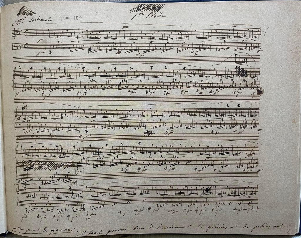 The first study too was played with disarming simplicity with the melody sustained by the underlying changing harmonies.Here Chopin again makes a note for the printer to make the melody notes larger than the accompaniment with very precise pedal indications.Of course the modern day piano is much more advanced but the pedal indications give a very good indication of the sound and phrasing that Chopin had in his mind at the moment of creation.Sir Charles Halle in Manchester noted how Chopin played this study where there were no single notes but moving harmonies.We can read in a review of one of Chopin’s concerts in Manchester in the home of the Earl of Falmouth, that was announced in The Times. Being a fashionable event, this performance was covered by The Athenaeum, The Illustrated London News and The London Daily News as well as The Manchester Times 107.