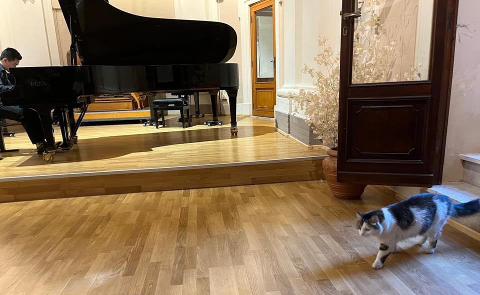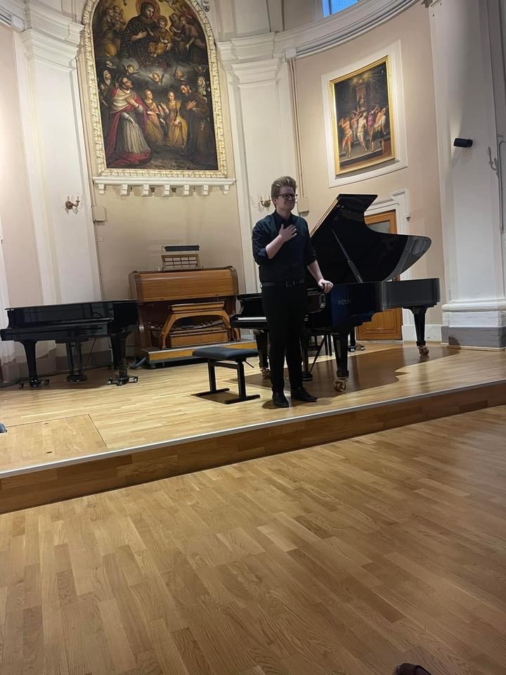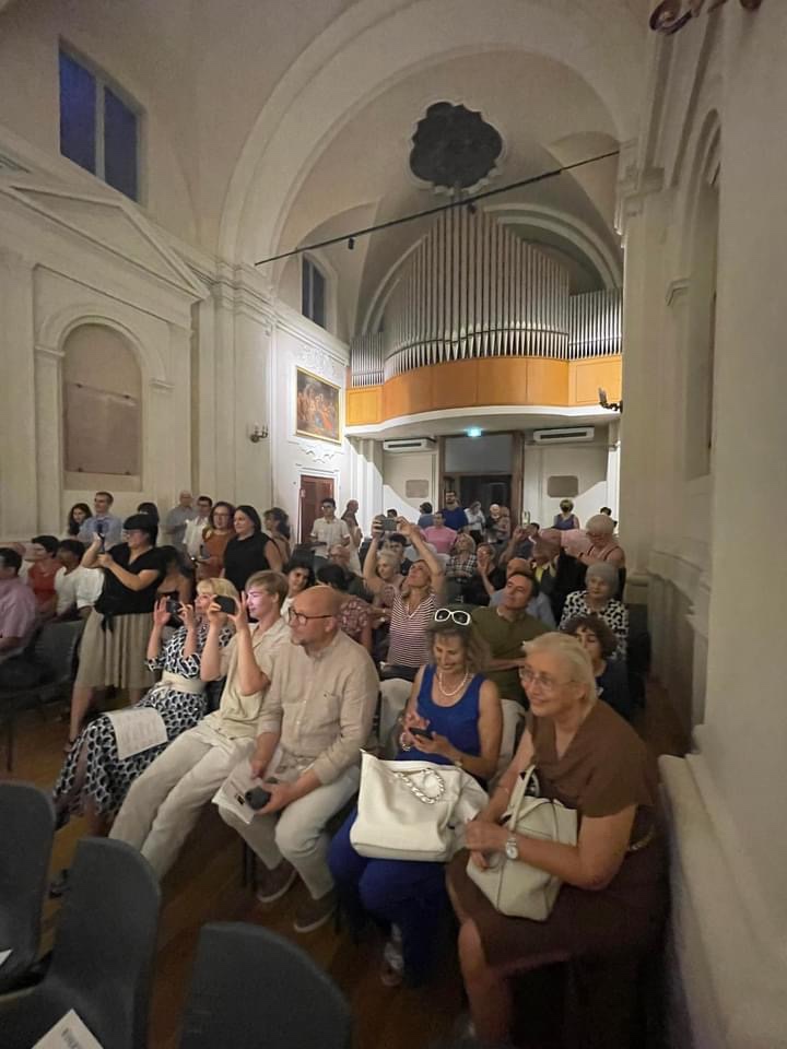 Angela writes :”We had a fantastic final concert of the masterclass. I was very proud of all the students, and it was great to see the Auditorium Marianum full to the back. Even the cat walked in during the Barber Sonata–haha!!