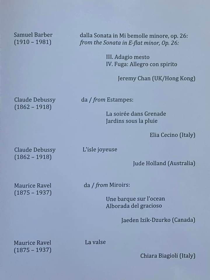 Scarbo was a direct reply to Balakirev’s Islamey .laying down the gauntlet!La Valse is the culmination of a nightmare waltz for any but the fittest,most well equipped pianists.No pussyfooting for Chiara who gave a breathtaking account of this extraordinary tour de force with a kaleidoscopic fantasy of beguilingly sleezy colours.A brilliant finish to two hours of remarkable music making.