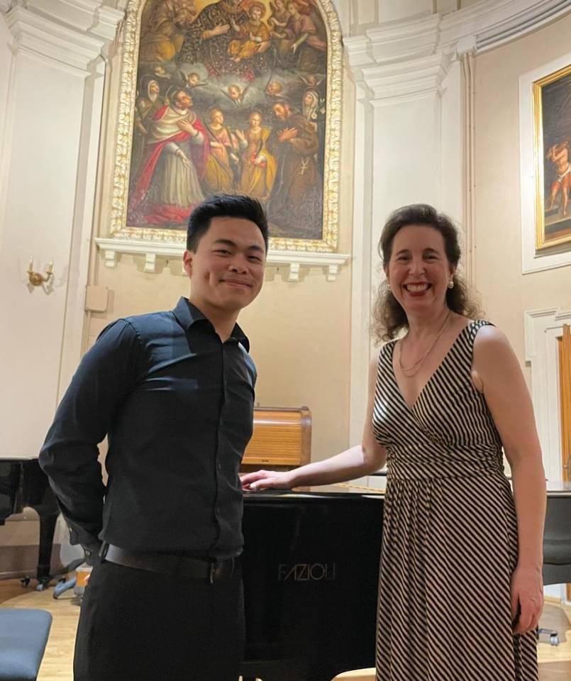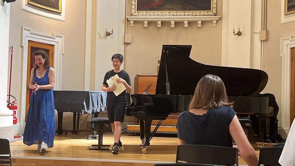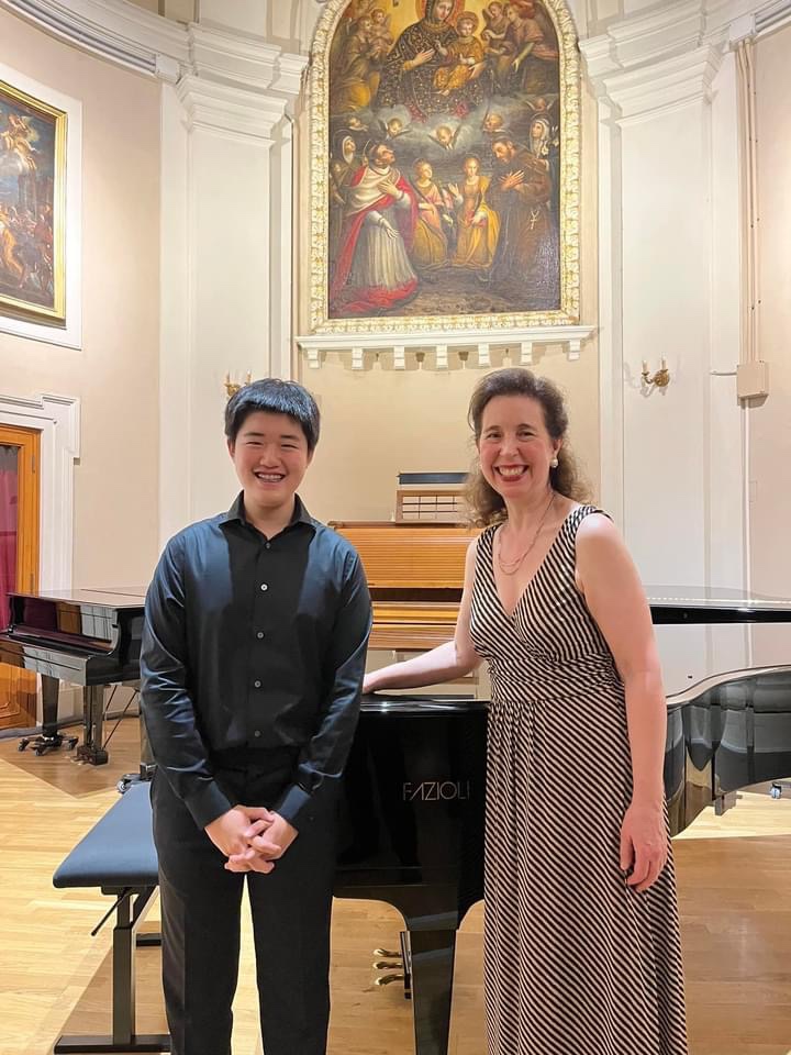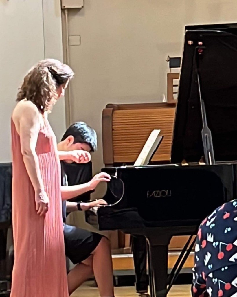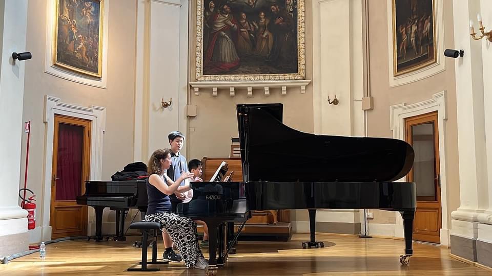 I am still in awe of Angela’s ability to play our repertoire perfectly back to us, her tireless energy in giving lessons on more than 60 pieces of music spanning the entire pianistic canon even in the merciless Italian heat, but even more so of the sound she gleaned from the keyboard, so elevated and inspiring it transcends words.