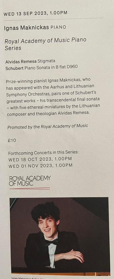Fascinating to be at Ignas Maknickas Wigmore debut after hearing him at the beginning of his studies here in London when he played the Mozart Double concerto with Alim Baesembayev in the RAM Piano Festival.