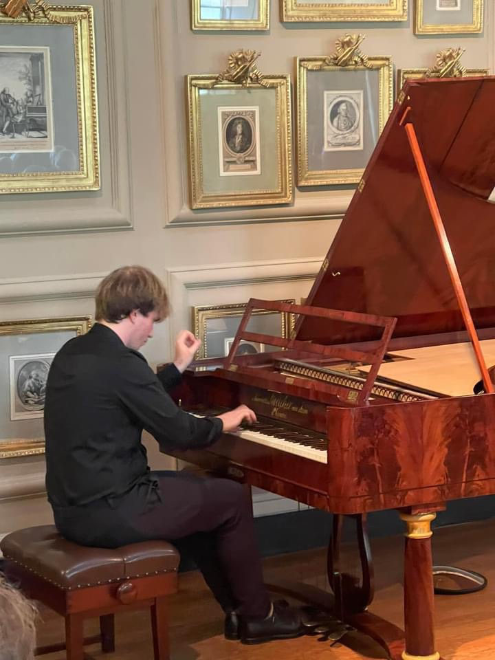 Surrounded by so many beautiful instruments all wonderfully restored and to be able to play the same instruments that composers had used to create eternal masterpieces is a lesson indeed.But all these instruments are in rooms that are a size that allows them to be fully appreciated and not, as so often happens,antique instruments being brought into halls that can accomodate many more than these poor instruments can comunicate with in the same manner.To quote myself :’…….an example to us all of how Mozart could be played respecting the period but not being intimidated by it…….. becoming one,as the very operatic meaning of Mozart was transmitted through them to us thirsty for such enticing musical integrity and inspiration and dare I add ‘authenticity!’(https://christopheraxworthymusiccommentary.com/2023/08/25/impeccable-living-mozart-as-queen-bodicea-drives-her-flaming-chariot-to-meet-grieg-salasswigutpastuszka-and-the-ohorkiestra-take-warsaw-by-storm/).