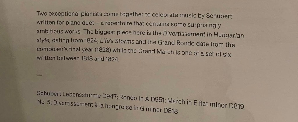 A transcendental control of sound that could produce what his beautiful programme notes describe as ethereal with unearthly beauty. Words can only go so far to describe what sounds can do so much better and it was the sounds that created the magic that one could only imagine from his written notes . What a voyage of discovery too with a March in E flat minor from 1824 that was such an extraordinary work of incredible poignancy and sheer genial invention.