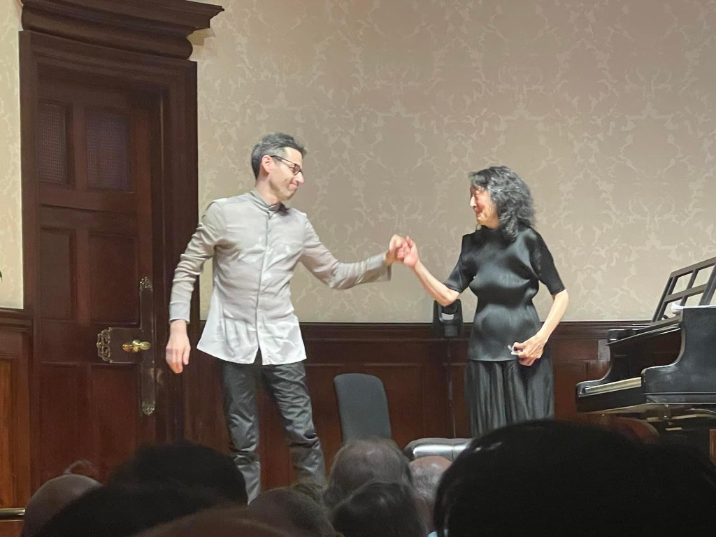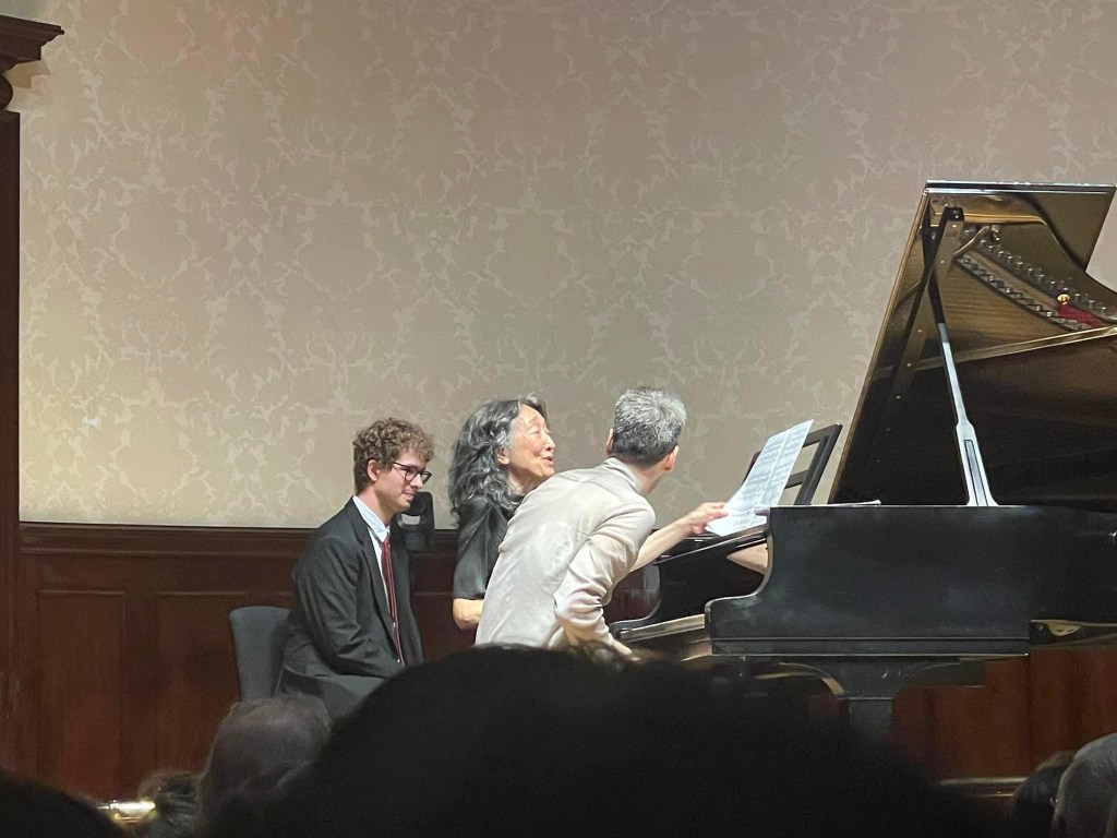 Patsy Toh (Mrs Fou Ts’ong- https://christopheraxworthymusiccommentary.com/2021/01/13/roberto-prosseda-pays-tribute-to-the-genius-of-chopin-and-the-inspirational-figure-of-fou-tsong/) teacher at the Purcell School of Firoze Madon and also Magdalene Ho ,both now in the class of Dmitri Alexeev at the RCM .Magdalene (19) was the winner last weekend of the Clara Haskil Competition Maestro Portugheis with his ‘boys’Nicolas Absalom. https://christopheraxworthymusiccommentary.com/2019/08/15/the-thomas-harris-international-piano-foundation-part-12/ https://christopheraxworthymusiccommentary.com/2019/11/10/viva-alberto-portugheis-and-the-thomas-harris-international-piano-foundation/I have heard Nicolas many times over the past five years in the various competitions and masterclasses held in collaborazione with the late Mrs Harris and the foundation created by her to celebrate the memory of her son who had also been mentored by Maestro Portugheis . Nicolas has matured ,via his studies in Weimar and Berlin into an artist of stature.One can gauge the maturity and musicianship of an artist in performances of the genius of Mozart that Schnabel famously decreed was too difficult for adults but too easy for children.Nicolas is now a mature young man and his Mozart was of great clarity and purity and technically impeccable showing great style. Of course the Ravel Toccata showed of his technical preparation but above all showed his musical intelligence choosing a tempo in which Ravel’s enchanted sound world could ravish and seduce as well as astonish!Zoltan GalyasZoltan Galyas I have not heard before and was intrigued to hear that he had to take his two children to school before joining the class at 10 am in Steinways.Talking to him afterwards too I was full of admiration for a born pianist ,as he so clearly demonstrated ,who was fully employed playing in Hotels and clubs in order to survive with a young family ( similar of course to the ‘menial’ tasks that Bach and Mozart had to undertake for their ‘masters’ in order to survive ).A pianist who has hands like limpets that are made to cling to the keys ,never hitting but digging deep into each key where his fingers are so obviously at home. A Chopin third Scherzo ,despite the odd blemishes,that was played by a true musician who could shape the majestic octaves horizontally into a musical line that led so naturally into the magical chorale that is heralded with such majesty.A coda of lightening speed but with fingers that knew where they were going but a driver that just needed to be less in a hurry! As Zoltan had explained he had started studying the Fourth Scherzo and was working now backwards and has arrived at the doorstep of the First .The fourth is a work close to his heart as was obvious from the warmth and control he could coax out of this wonderful black beast that Steinways so graciously allow real pianists to perform on in their beautiful new streamlined show room.Firoze Madon https://christopheraxworthymusiccommentary.com/2023/05/06/thibaudet-inspires-at-the-rcm-in-london/I had forgotten that I had heard Firoze play in a masterclass at the RCM of Thibaudet and I remember how impressed I was with his inborn musicality and sensitivity to sound.He had great respect for the Beethoven op 90 Sonata where the rests above all were so precise but also the rhythmic energy and sense of architectural shape.The Schumann Novelette was played with great contrasts between the opening strident chords and the romantic sweep of the composers poetic soul.’Marcato e con forza’ but in Firoze’s hands it was never allowed to become hard or ungrateful but full and expansive as he allowed the music to pour from his youthful hands with the same spirit with which the composer had obviously penned them.From the opening bass C sharp Firoze created a panorama of beauty and continuous mellifluous flights of invention in Chopin’s miraculous outpouring of song that is his Barcarolle.A performance of great authority and aristocratic musicianship that could dig deep into the soul of Chopin without any superficiality or excess.Nikita Lukinov https://christopheraxworthymusiccommentary.com/2023/06/05/nikita-lukinov-at-st-marys/I think all of us present today were aware that we were in the presence of a young master. A control and authority where delicacy and rhythmic energy combined in an Allegro con brio that was played with ravishing style and colour allied to dynamic rhythmic energy.The famous double thirds he organised to give the utmost precision without the terror of having to start a sonata already on a slippery slope .A bit like op 111 or op 106 should we play it like a master pianist or a master musician ?Nikita is both as he demonstrated with his masterly musicianship throughout.Not sure Arrau or Serkin would have forgiven him his pianistic trickery though!An Adagio that was barely whispered as it flowed on a continuous current of grandeur and beauty .Scintillating clarity to the scherzo with a trio that was just great washes of sound .The Beethovenian elegance of the Allego assai was played with transcendental control where the composer already transforms the inherited Sonata form into a new style of elegance with genial surprises and weight. The Schnabel Edition of the the 32 Sonatas was a just prize for a young musician headed for the heights Maestro Portugheis presenting the Schnabel Beethoven Edition to Nikita in recognition of his masterly performance of the longest and most important of the early Sonatas.Work behind the scenes with scrupulous attention to the composers indications – transforming them into sounds with humility respect and artistry Following the score during the performance – this is where an interpretation is born and the starting point for an artist to bring the composers wishes to life.Yisha Xue of the National Liberal Club where Nikita will perform on the 6th November in the KT series En Blanc e Noir